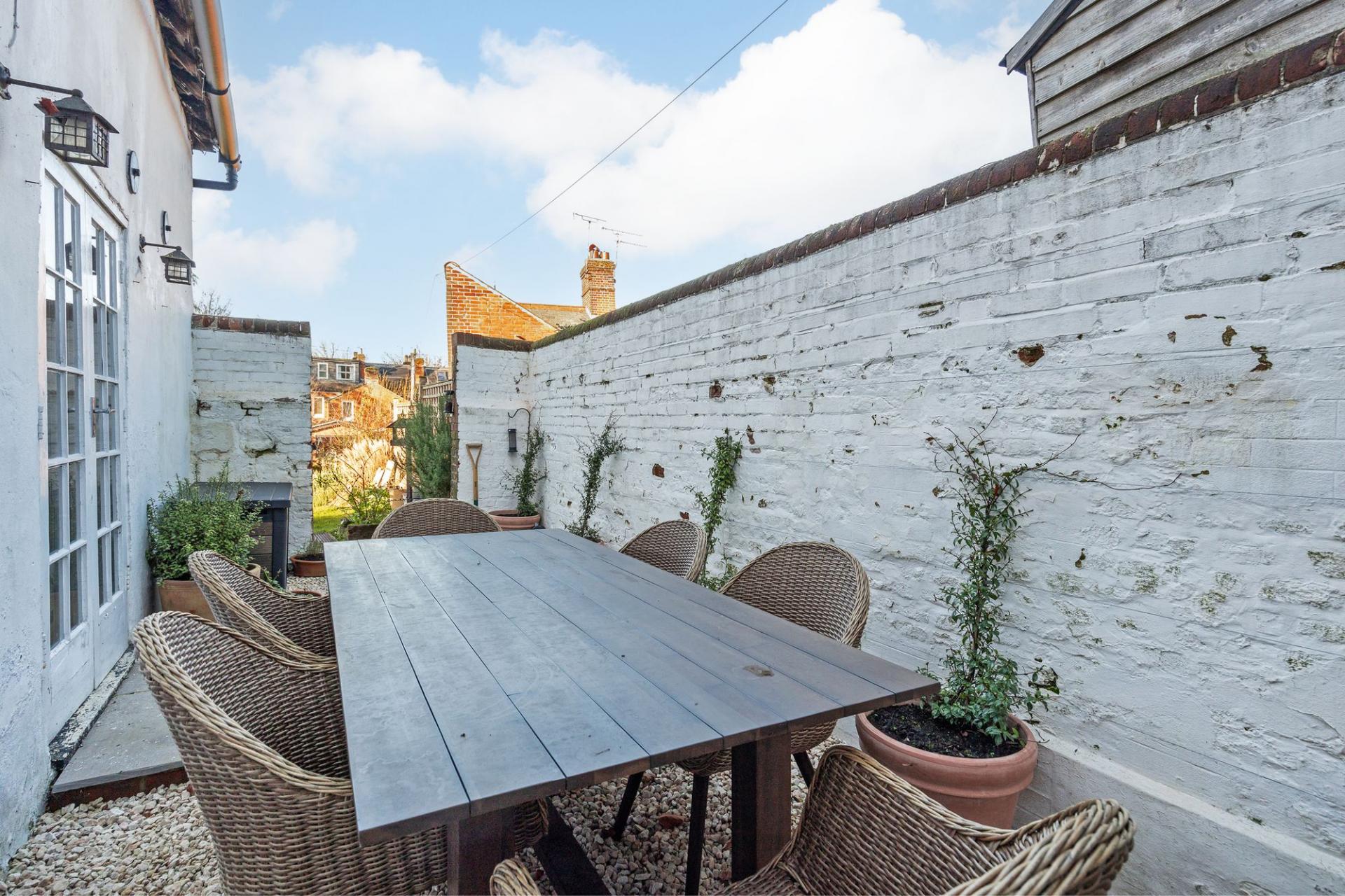 A stylish, Grade II Listed, freehold city cottage with an abundance of history and charm. Constructed circa 1788 using materials from the old Magdalen Hill Hospital, this magnificent home offers a rare opportunity to purchase a classic piece of Winchester’s history. The property enjoys an elevated and little-known position right in the middle of the city centre. Having been recently renovated by the current owner, internally the property is bejewelled with charm and character, with the benefit of contemporary style. The ground floor is open plan and comprises a generous entrance hall, dining room and sitting room, both enjoying gorgeous fireplaces and a cloakroom. The kitchen is positioned to the back of the house and has access out into a small private courtyard which, again, has been upgraded to create a fantastic external dining area, perfect for summer evenings. The first floor enjoys two double bedrooms, one at each end of the house. The principal bedroom enjoys a magnificent view over Water Lane and its Willow Tree, along with the Itchen Navigation. A family bathroom on the first floor serves both bedrooms. Outside, a delightful garden lies to the front of the property, abundant with flowers and mature shrubs it provides a haven in this central city setting.