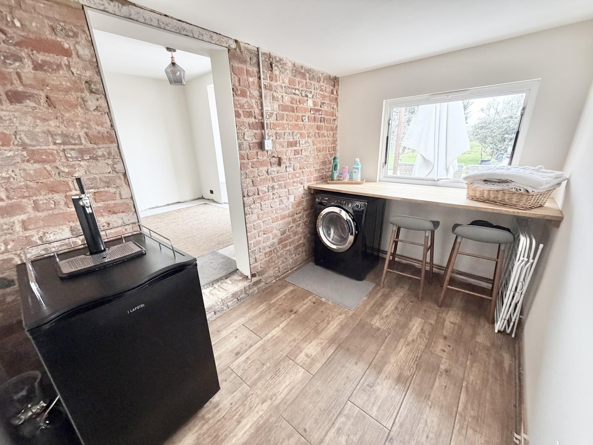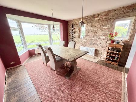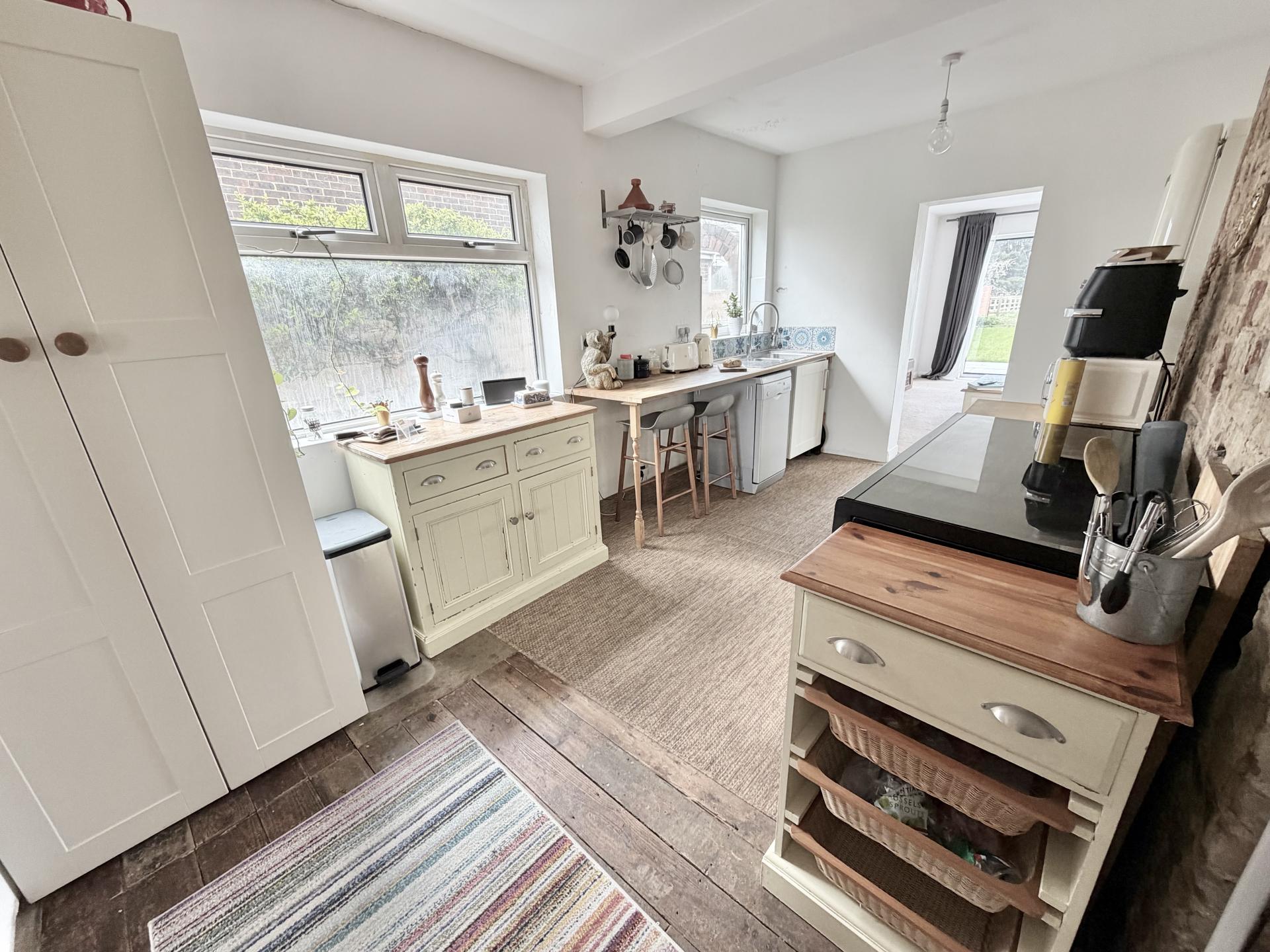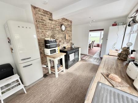 Believed to date back to the 1930s, the home boasts a unique and versatile layout arranged over three floors. A standout feature is the breathtaking outlook across Dorney Common, best enjoyed from the elegant dining room, where a large bay window perfectly frames the view. This space flows seamlessly into a generous galley-style kitchen, fitted with a range cooker, double oven, and a selection of units complemented by wooden worktops.