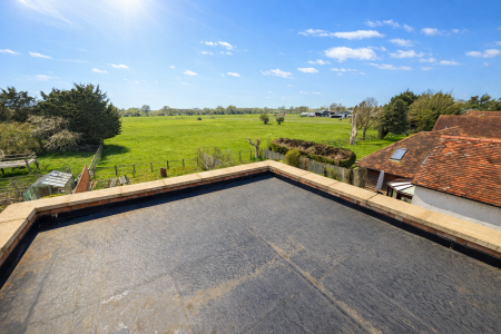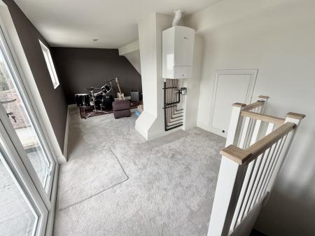 The top floor offers a highly adaptable space, ideal as a further bedroom, home office, or hobby room. With glass double doors opening onto a private roof terrace and additional storage within the eaves, this level adds both character and practicality.