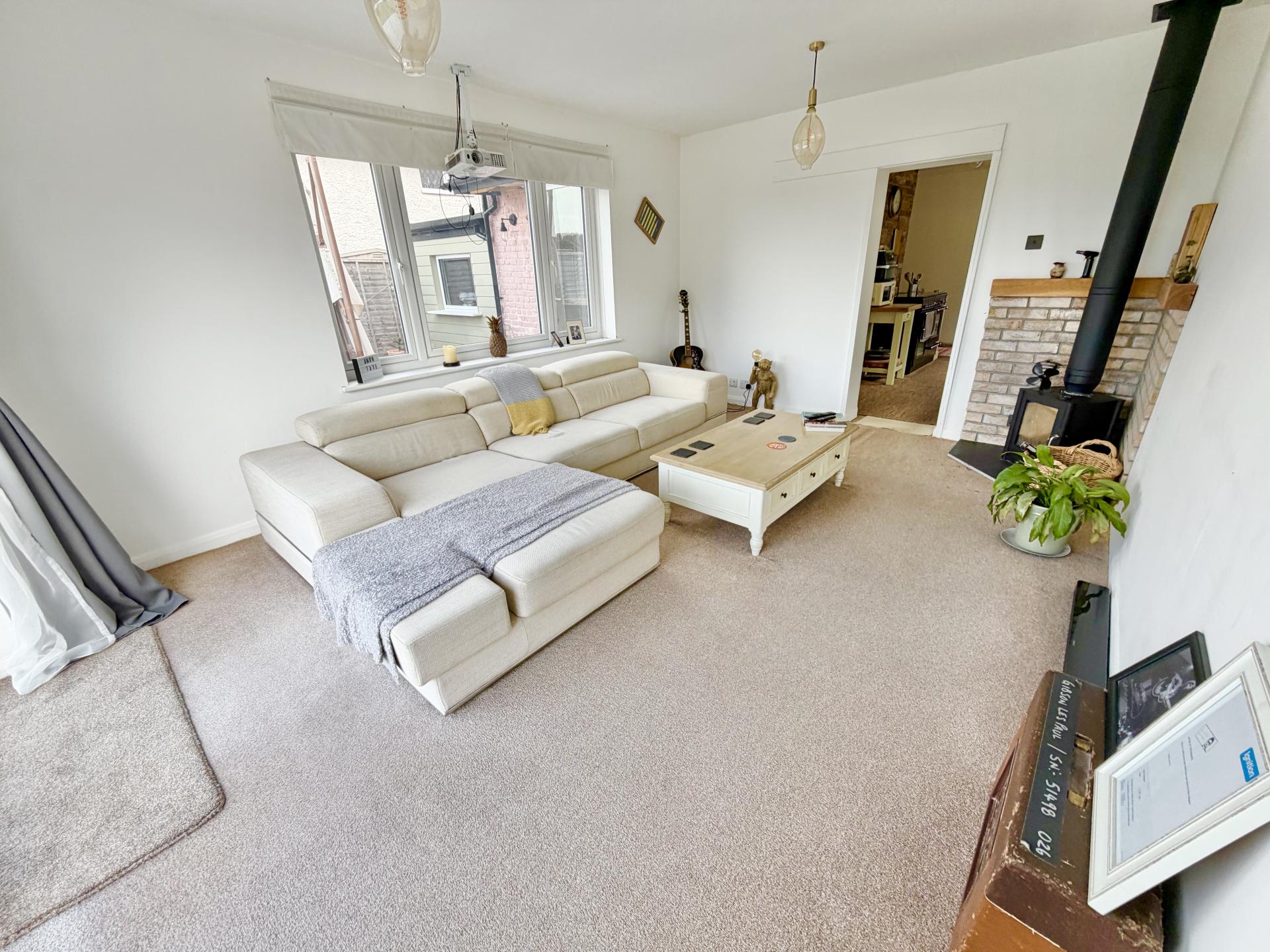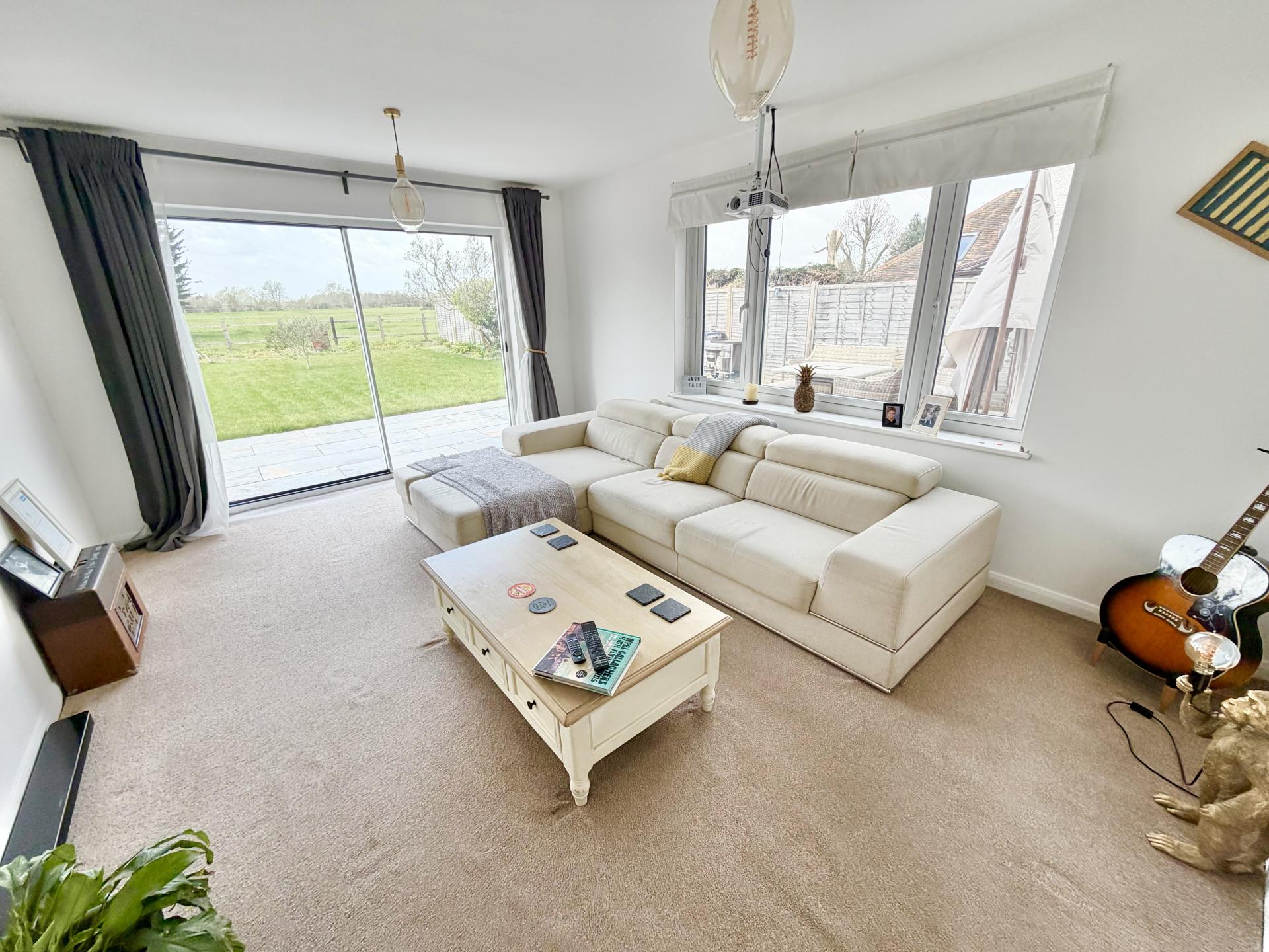 To the rear, the light-filled living room provides a welcoming retreat, complete with a log burner and sliding glass doors opening onto the garden. This area is ideal for entertaining, offering a wonderful connection between the indoor living space, patio, and expansive rear garden. A second reception room further enhances the flexibility of the accommodation, also providing access to the garden and adjoining utility room.