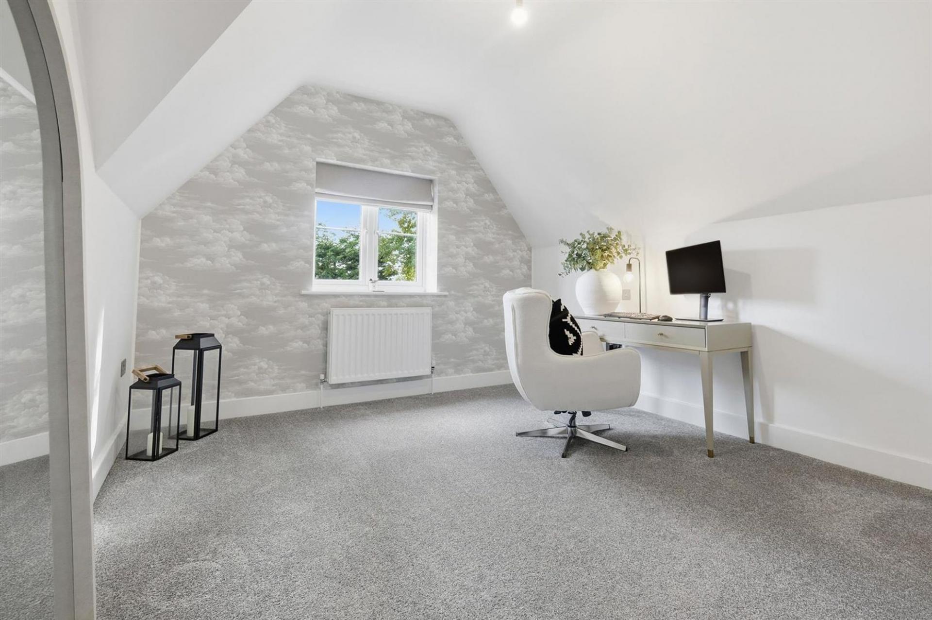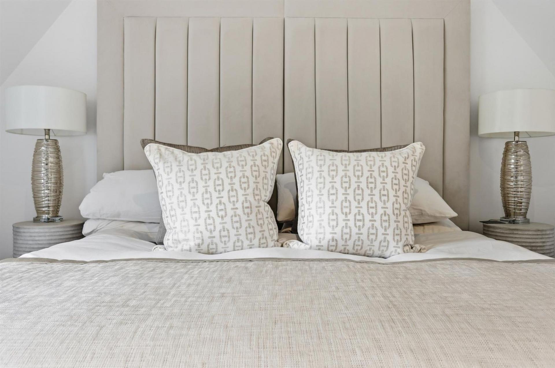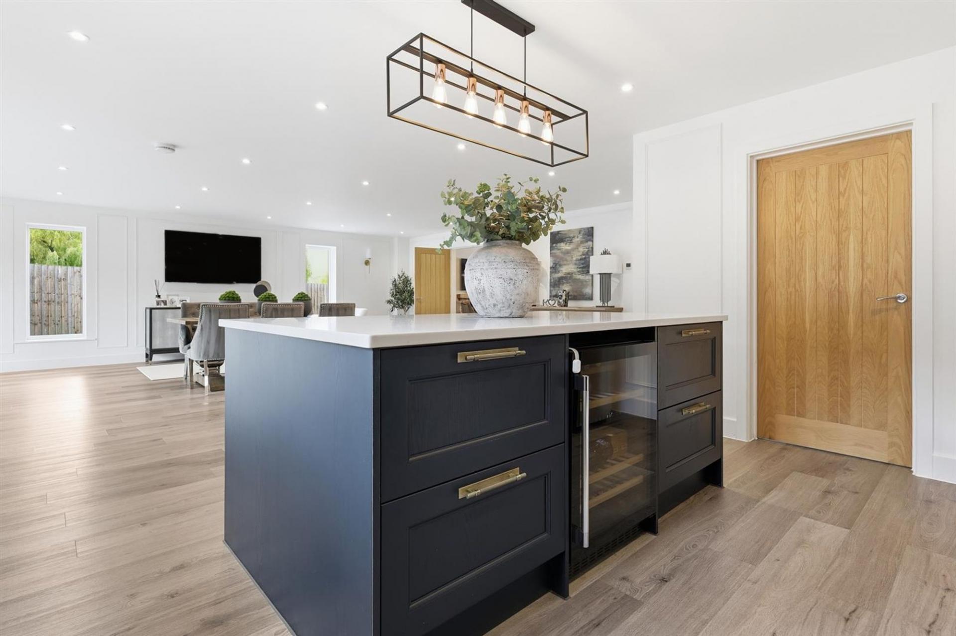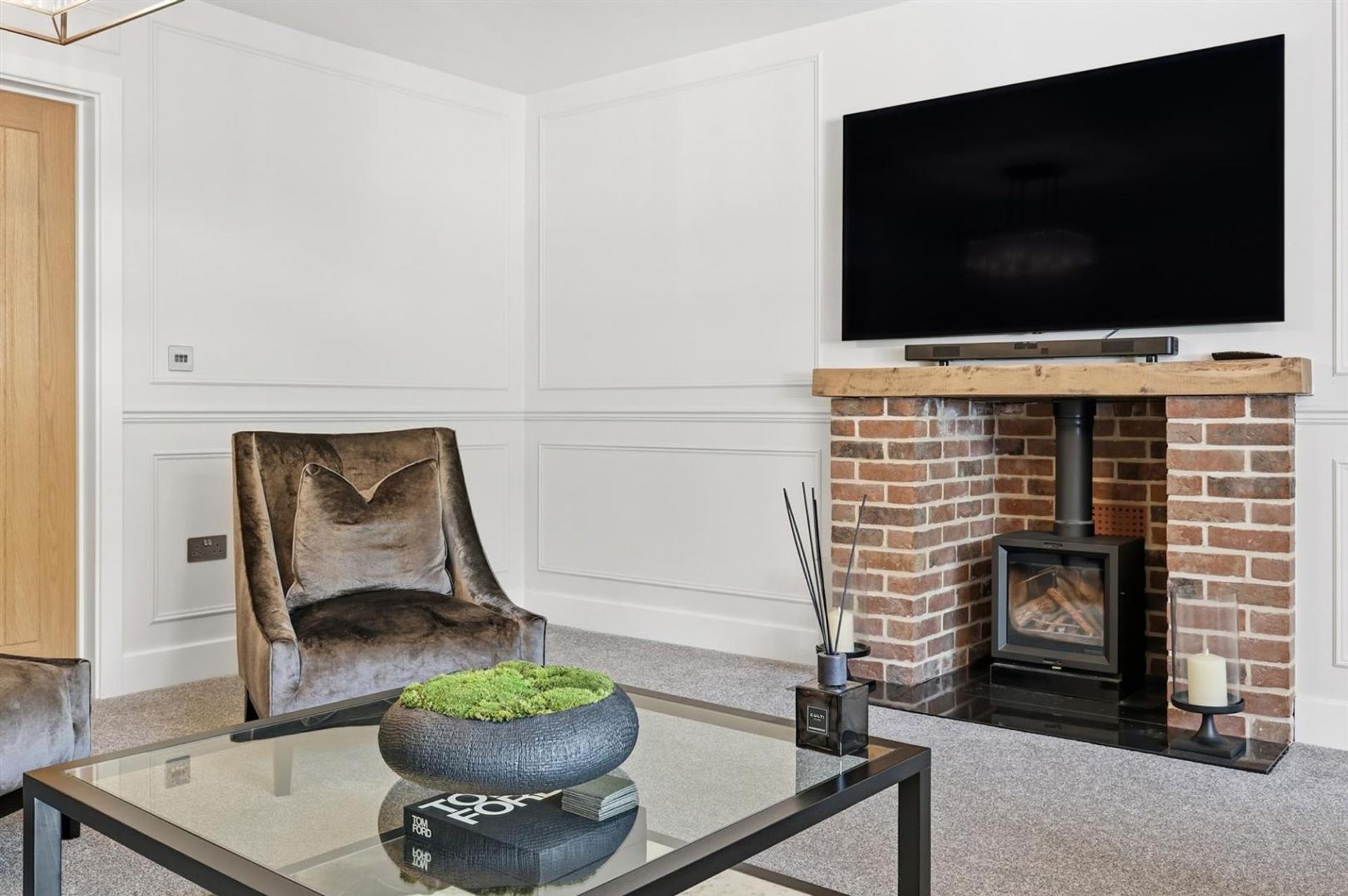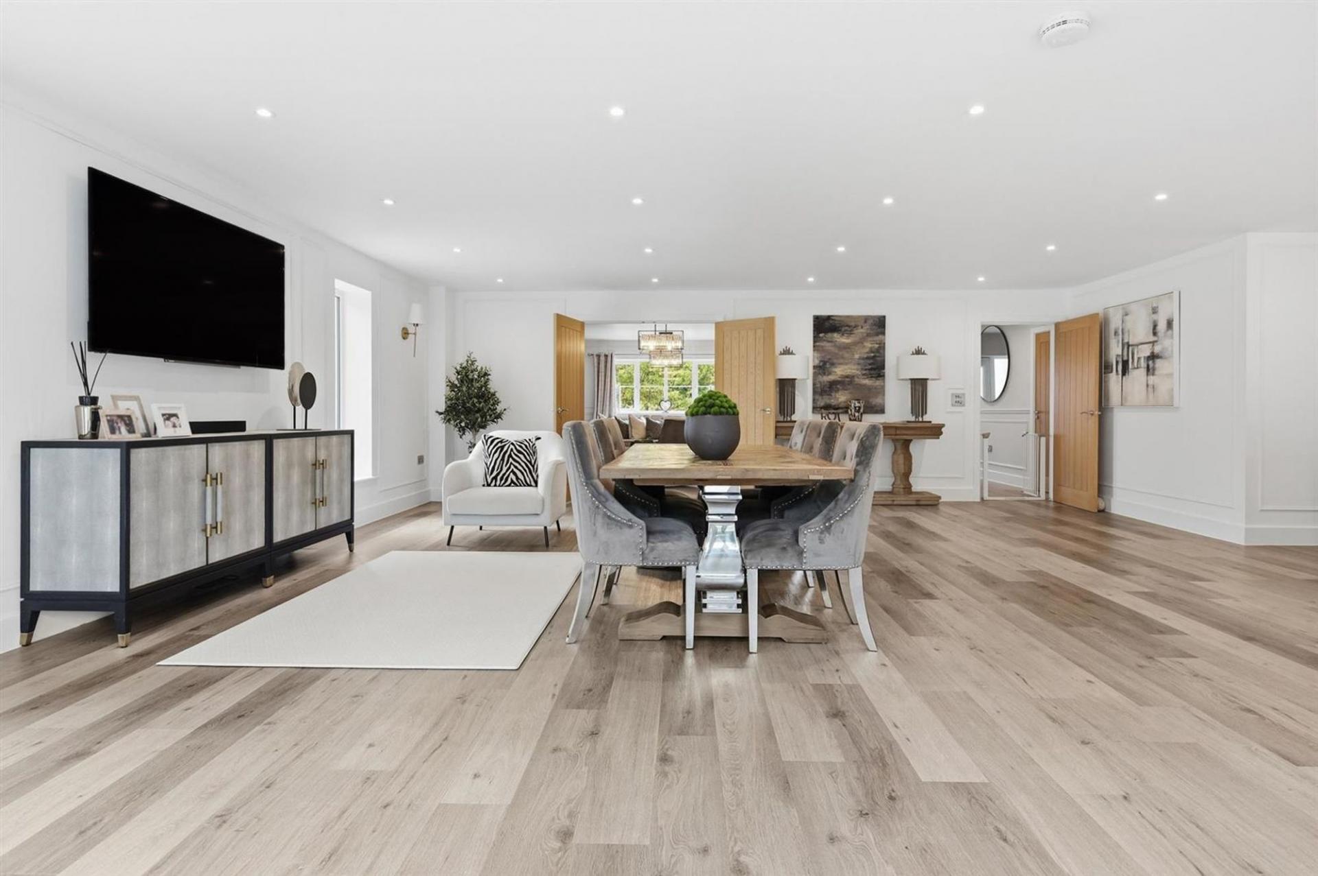 The ground floor features a stunning open-plan kitchen/dining/family room with bi-fold doors opening to the rear garden - perfect for entertaining. The contemporary kitchen includes a large central island with quartz worktops, integrated appliances, and a wine cooler. Additional rooms include a separate lounge with log burner, study, utility room, and cloakroom. The ground floor also benefits from underfloor heating throughout.