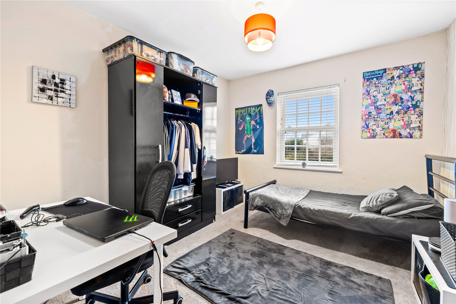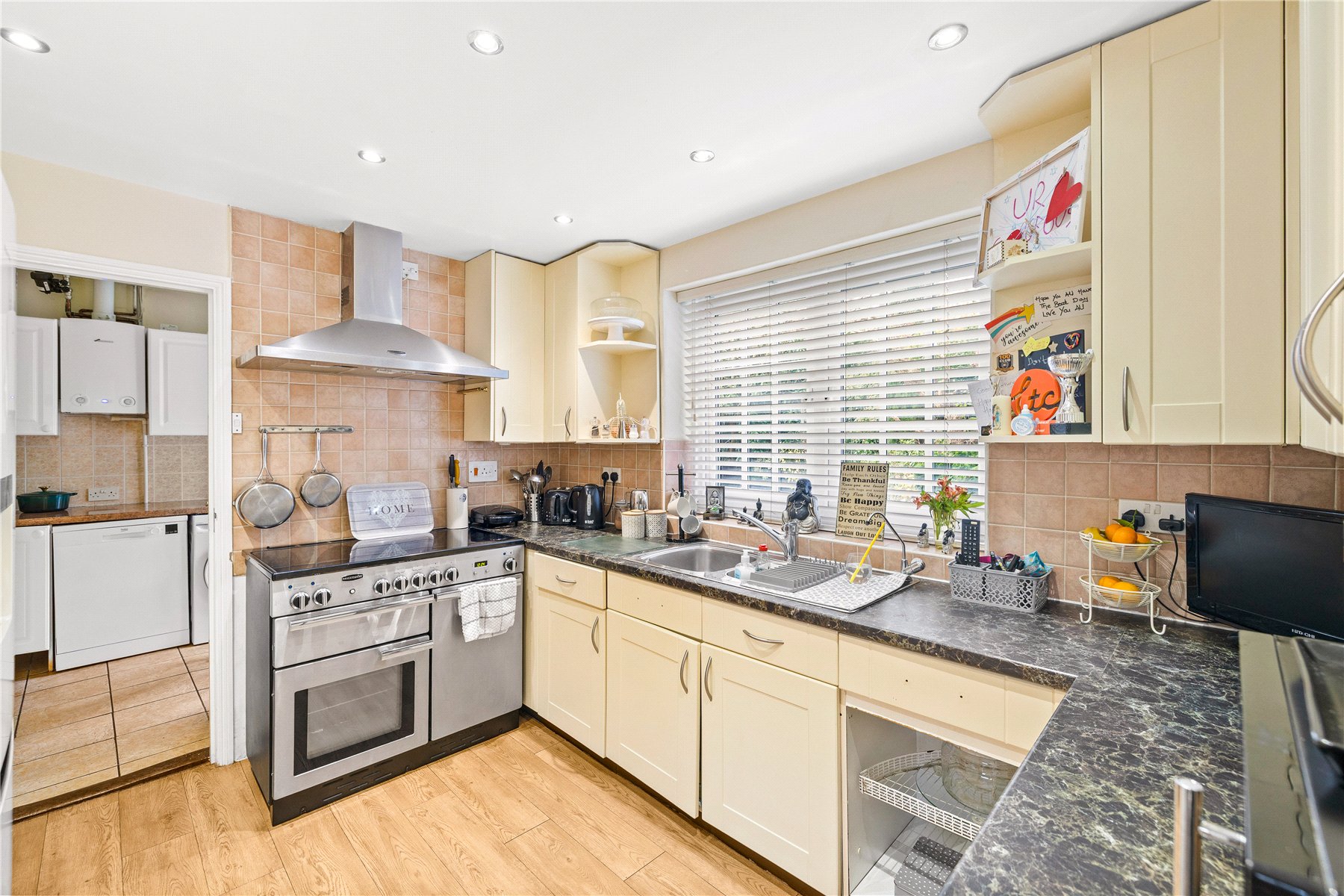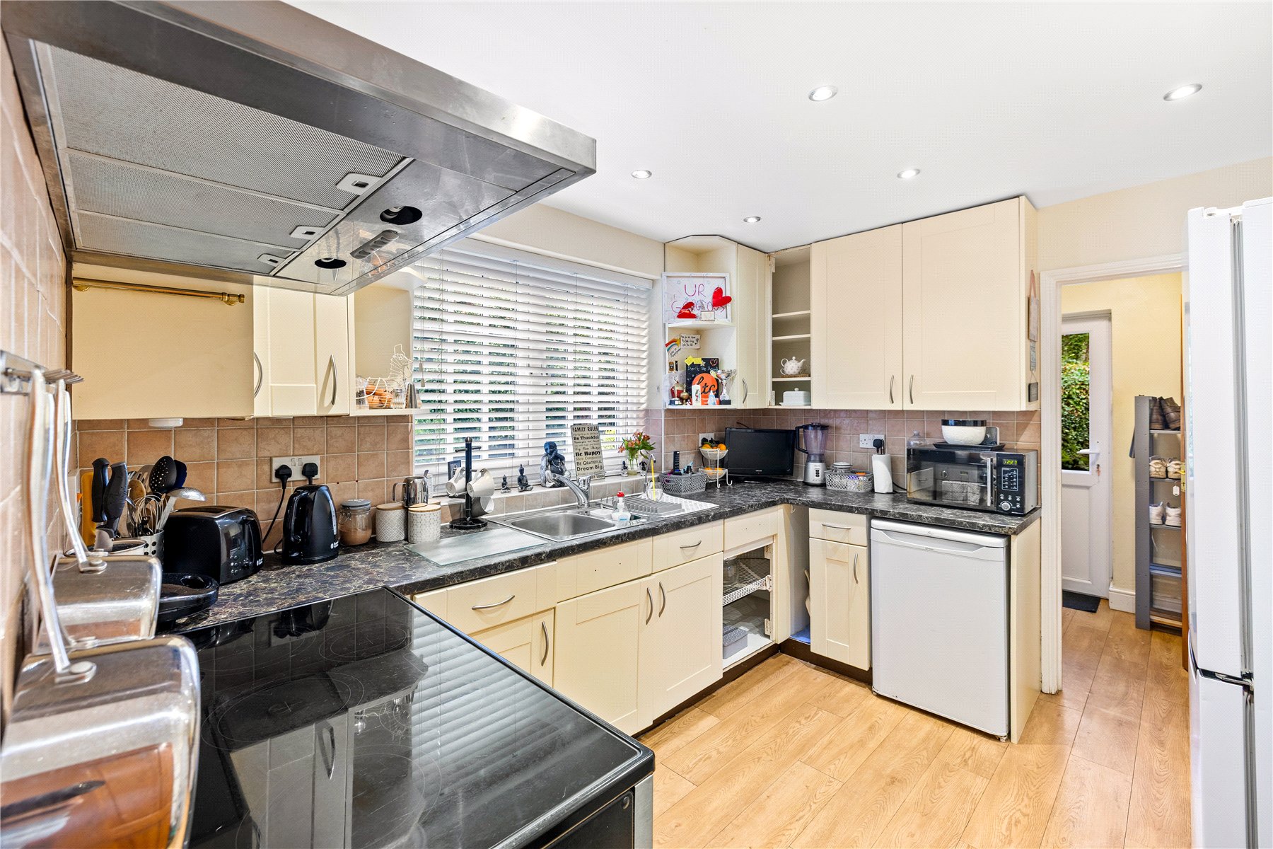 The kitchen, positioned at the rear of the property, is fitted with a range of base and eye-level shaker-style units with space for appliances. Adjoining the kitchen is a utility room and a boot room, while a downstairs cloakroom completes the ground-floor layout.