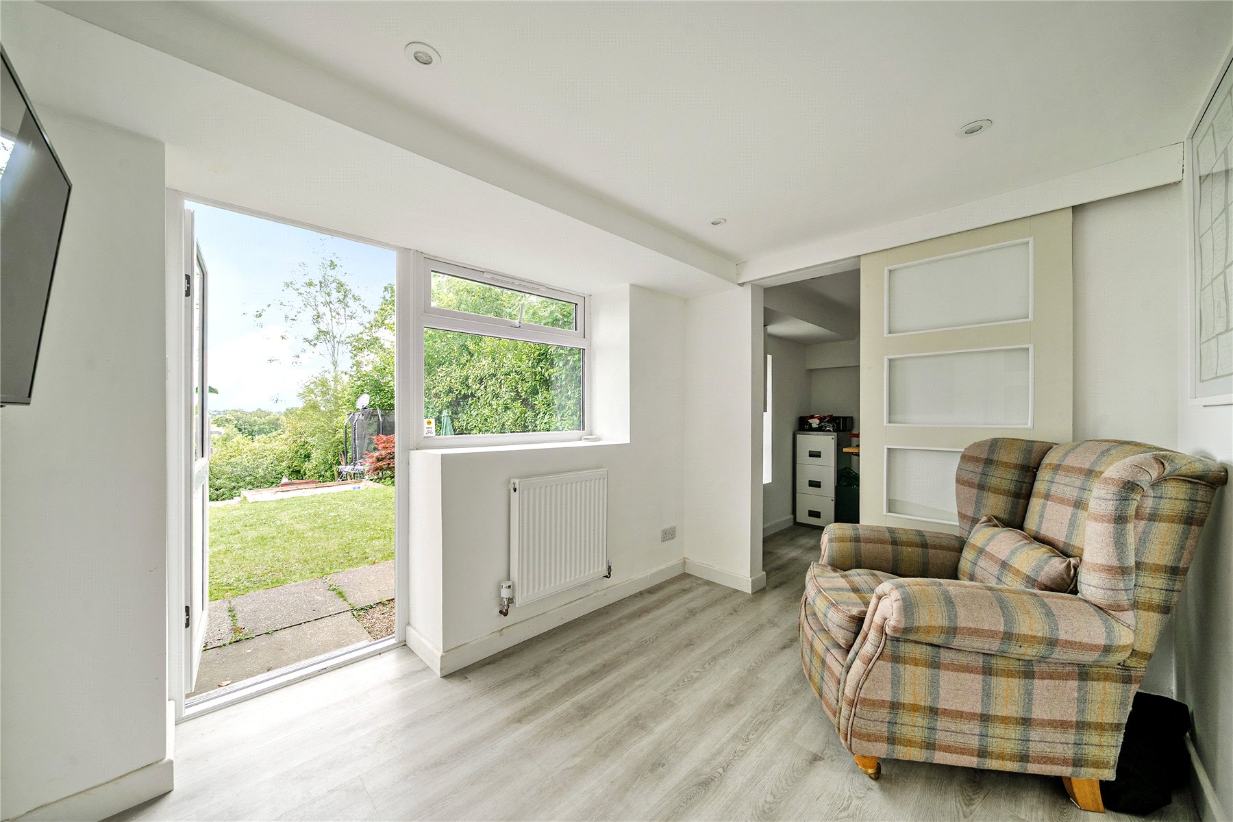 The property is certainly light with a double aspect living/dining room and access to a timber decked terrace looking out to the rear of the property.