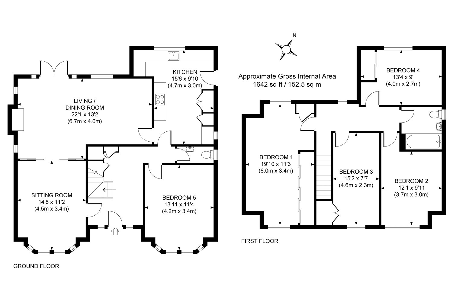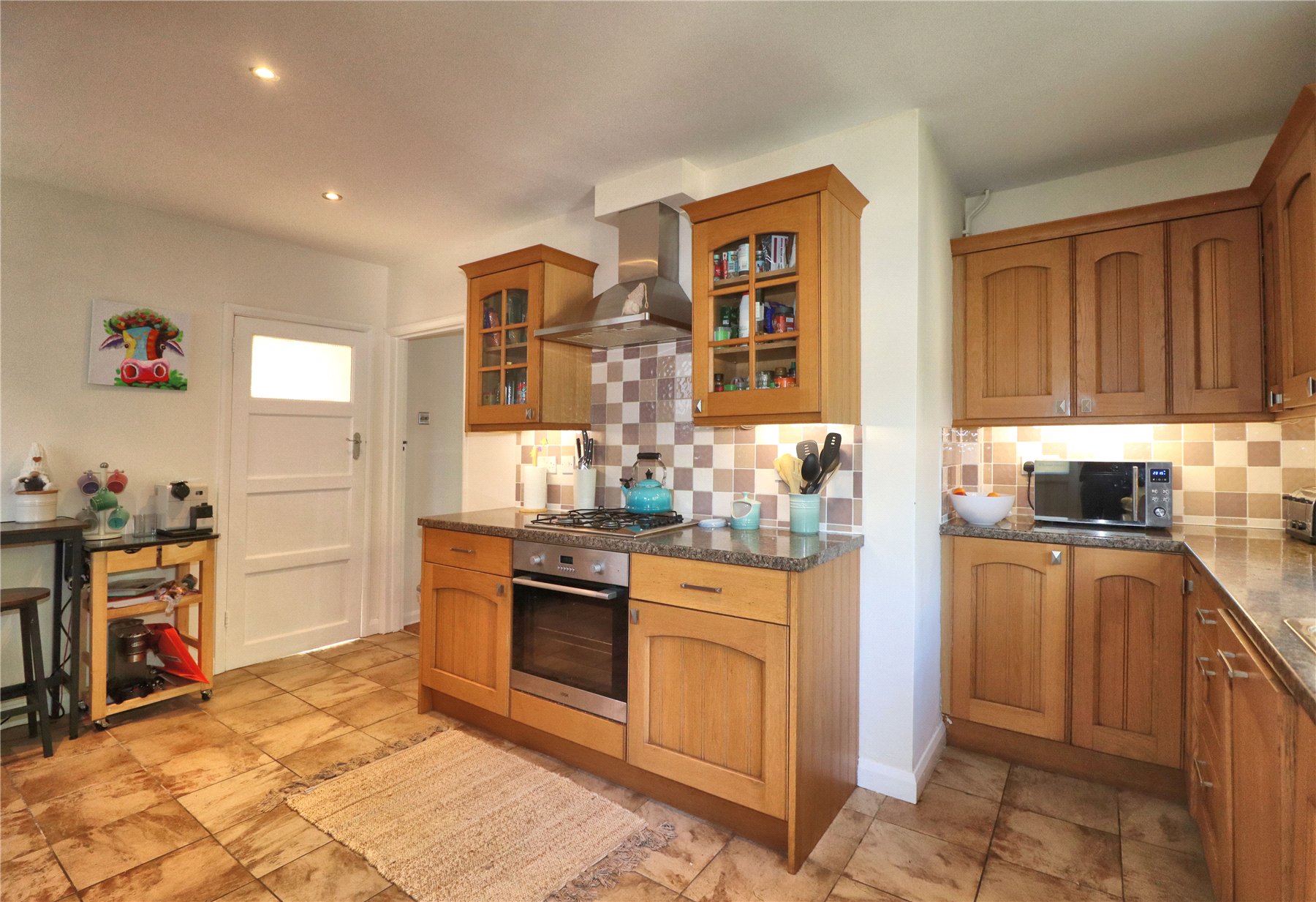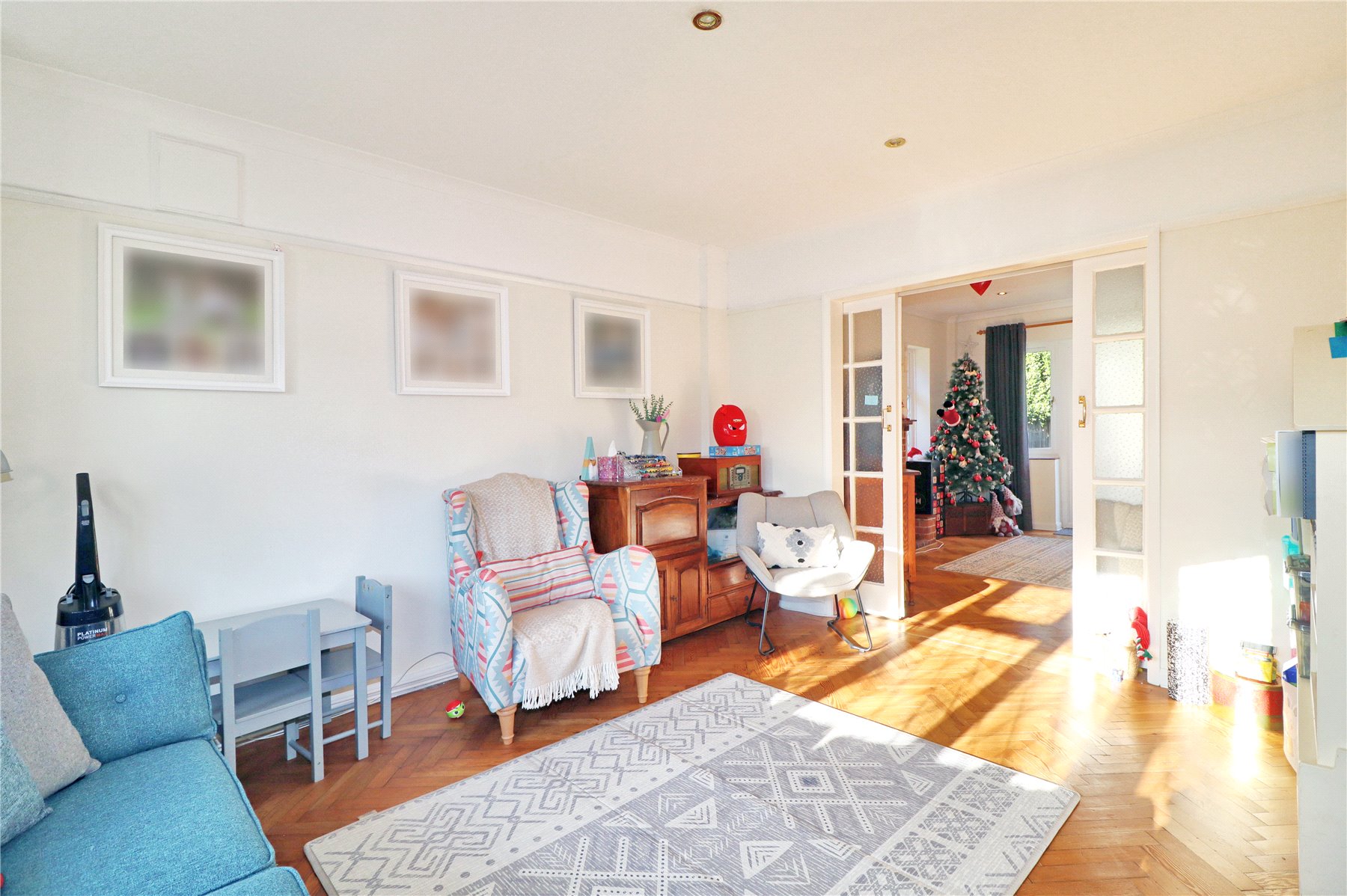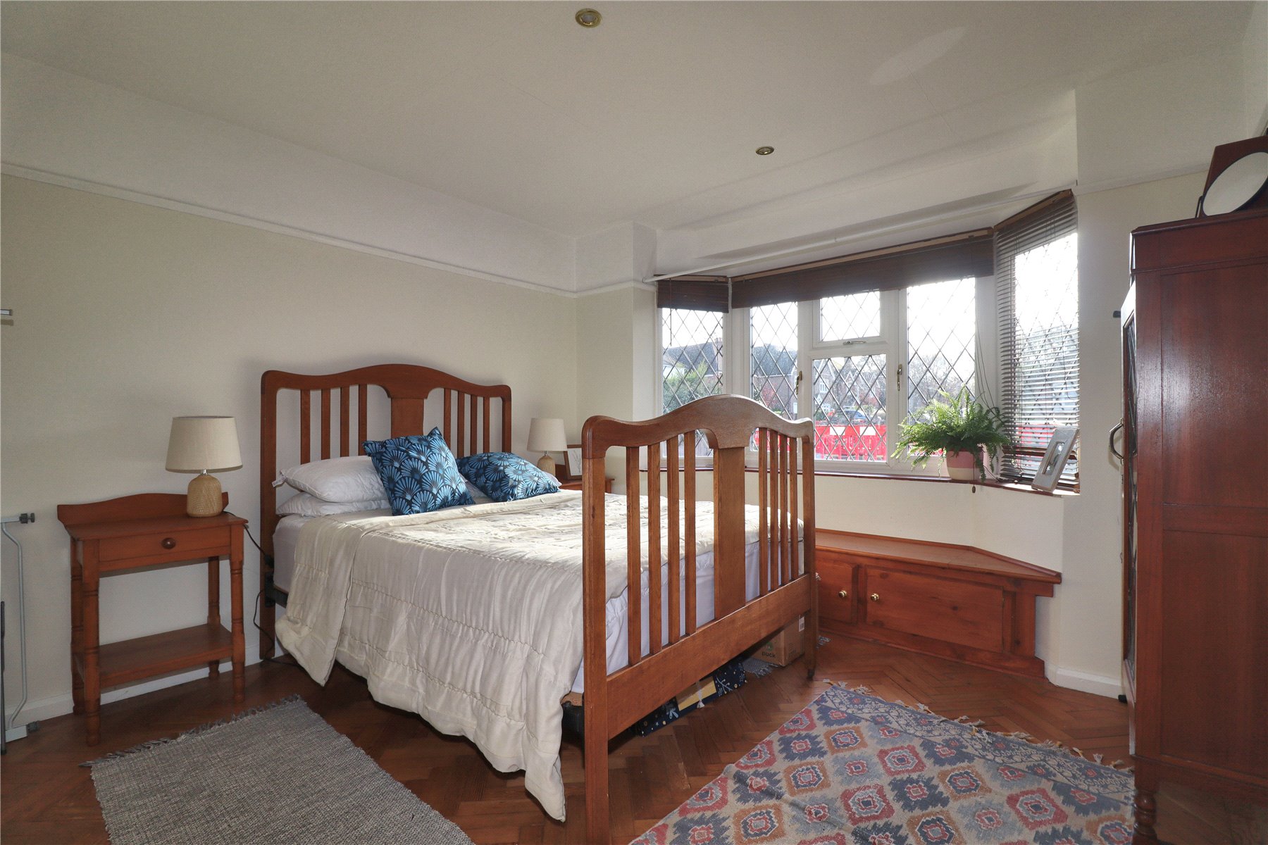 Offered to the market with no onward chain, this spacious detached chalet-style home provides flexible four/five bedroom accommodation with two/three reception rooms, ideal for family living or those seeking adaptable space.The ground floor features a bright rear-aspect living room with a charming brick fireplace, door to the garden, and a connecting sitting/dining room, offering excellent versatility for entertaining or relaxation. There is also a further front-aspect bedroom/reception room, a cloakroom, and a generous kitchen/breakfast room fitted with a range of units, integrated oven and gas hob, space for an American-style fridge/freezer, and access to the rear garden.Upstairs, there are four well-proportioned bedrooms and a family bathroom. The main bedroom enjoys a double-aspect outlook and benefits from wall-to-wall built-in wardrobes, providing ample storage.Externally, the property offers ample off-road parking via a block-paved driveway with double gates leading to additional side parking. The rear garden features a patio, lawn, and mature bamboo screening, creating a private and tranquil outdoor space.There is also potential to extend, subject to the usual planning consents.Situated in a quiet and sought-after cul-de-sac, the property is conveniently located close to local shops and within approximately one mile of Woking town centre and its excellent commuter links.