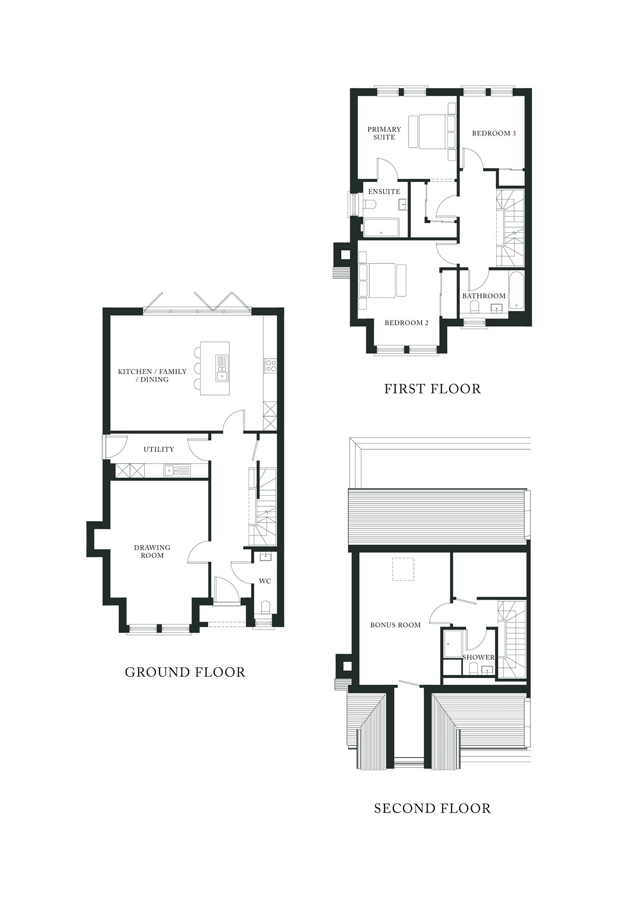 Martin Moore kitchens with expansive open-plan dining and family areas set a luxurious tone. Hawksmoor Homes is known for offering an exceptional quality of build and specification, and these wonderful new homes will certainly live up to expectations.