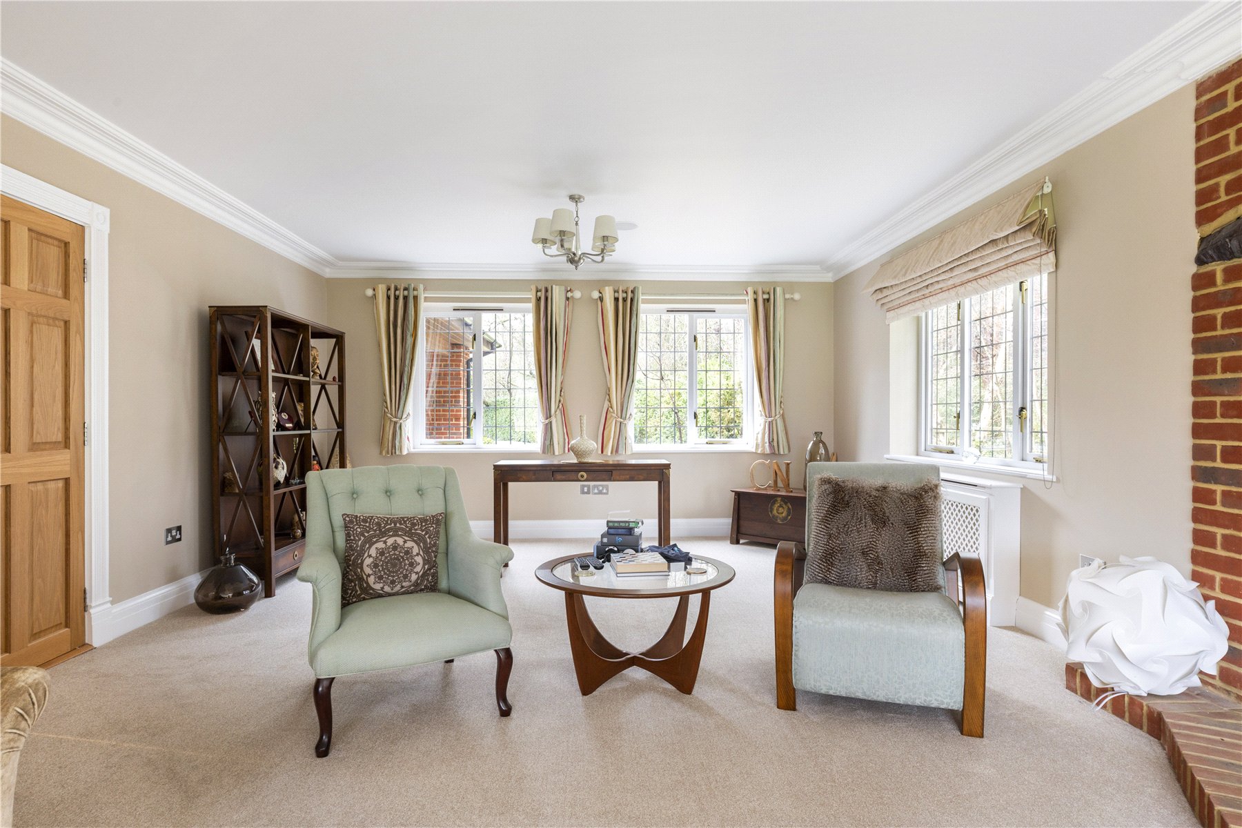 Leaded windows, chimney stacks and hung tiles are sympathetic to the local vernacular, while inside a plethora of beautifully considered spaces unfold from the grandeur of a central entrance hall where an exquisite solid oak staircase reaches up to a galleried landing.