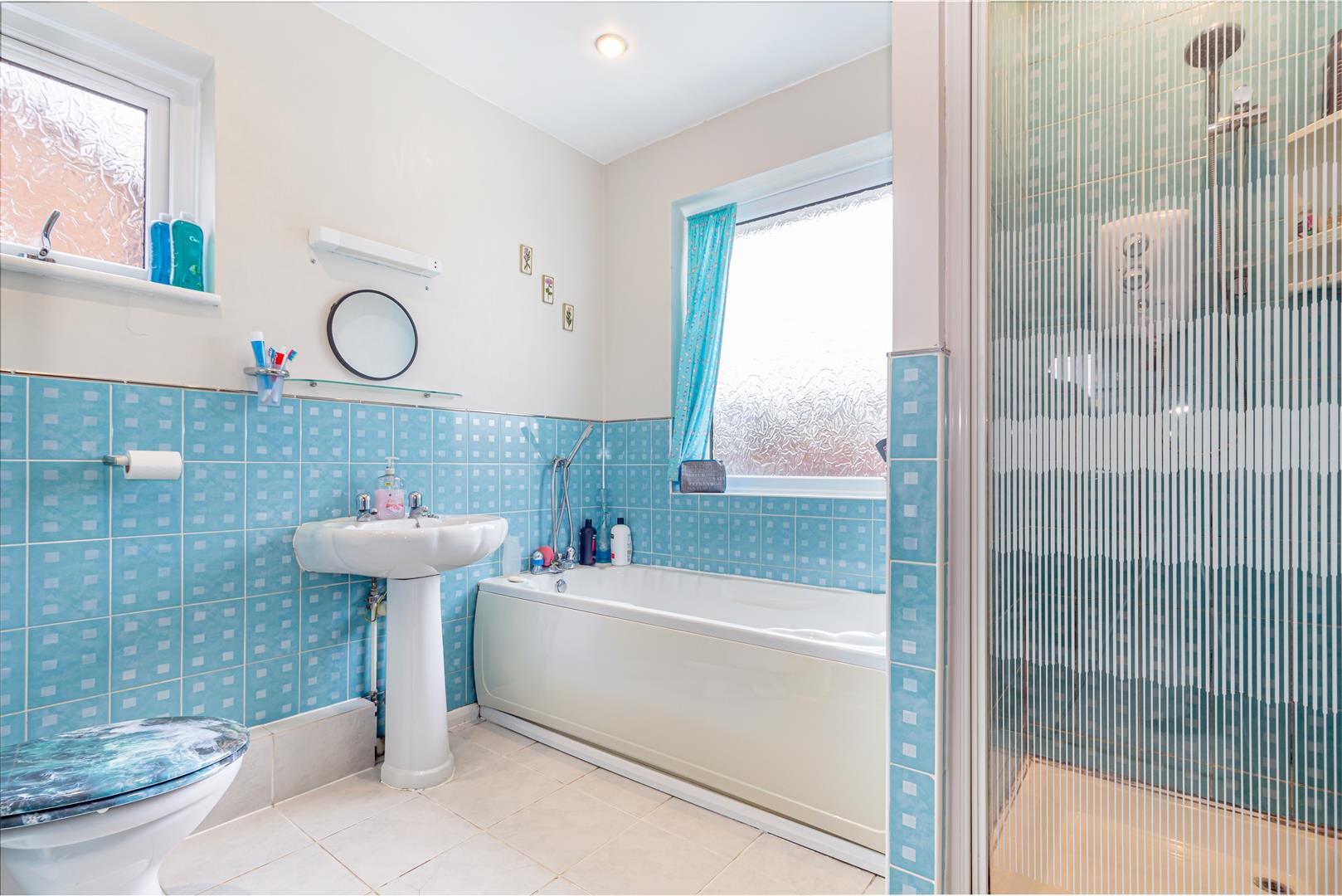 Bathroom - Obscure double glazed window to the rear aspect plus small obscure glazed window to the side aspect, shower cubicle with Triton shower, panelled bath, low level WC, pedestal wash hand basin. Extractor, three ceiling spot lights, part tiled walls, heated towel rail and tiled floor.