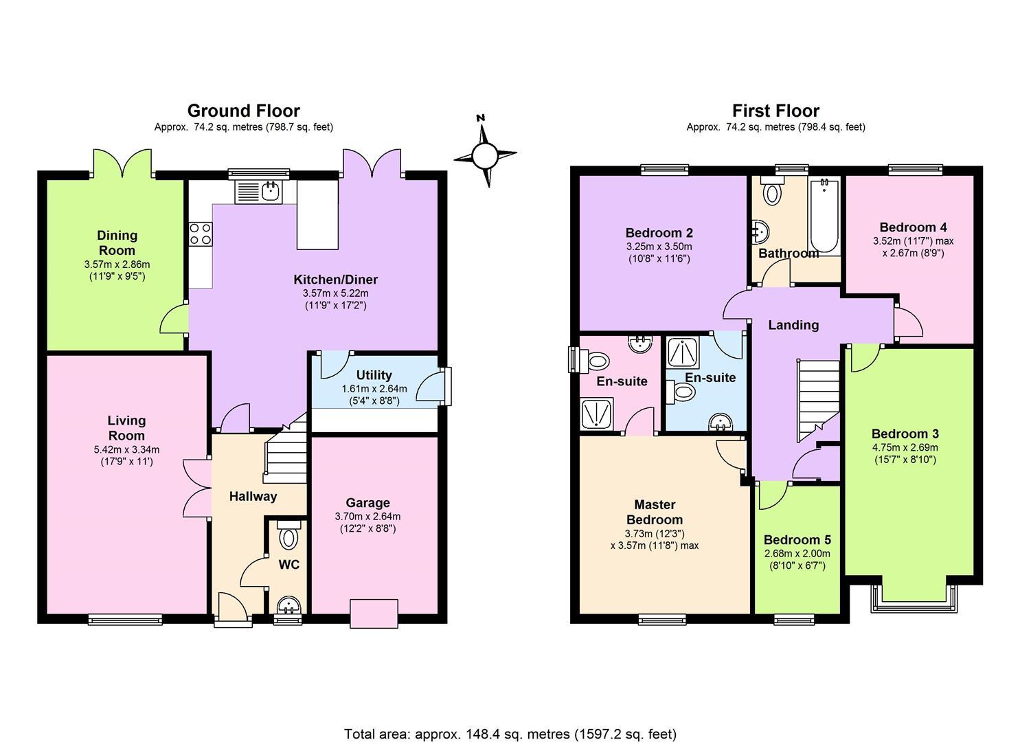 To the first floor are five generously sized bedrooms, two of which benefit from stylish ensuite shower rooms. A modern family bathroom suite serves the remaining bedrooms.