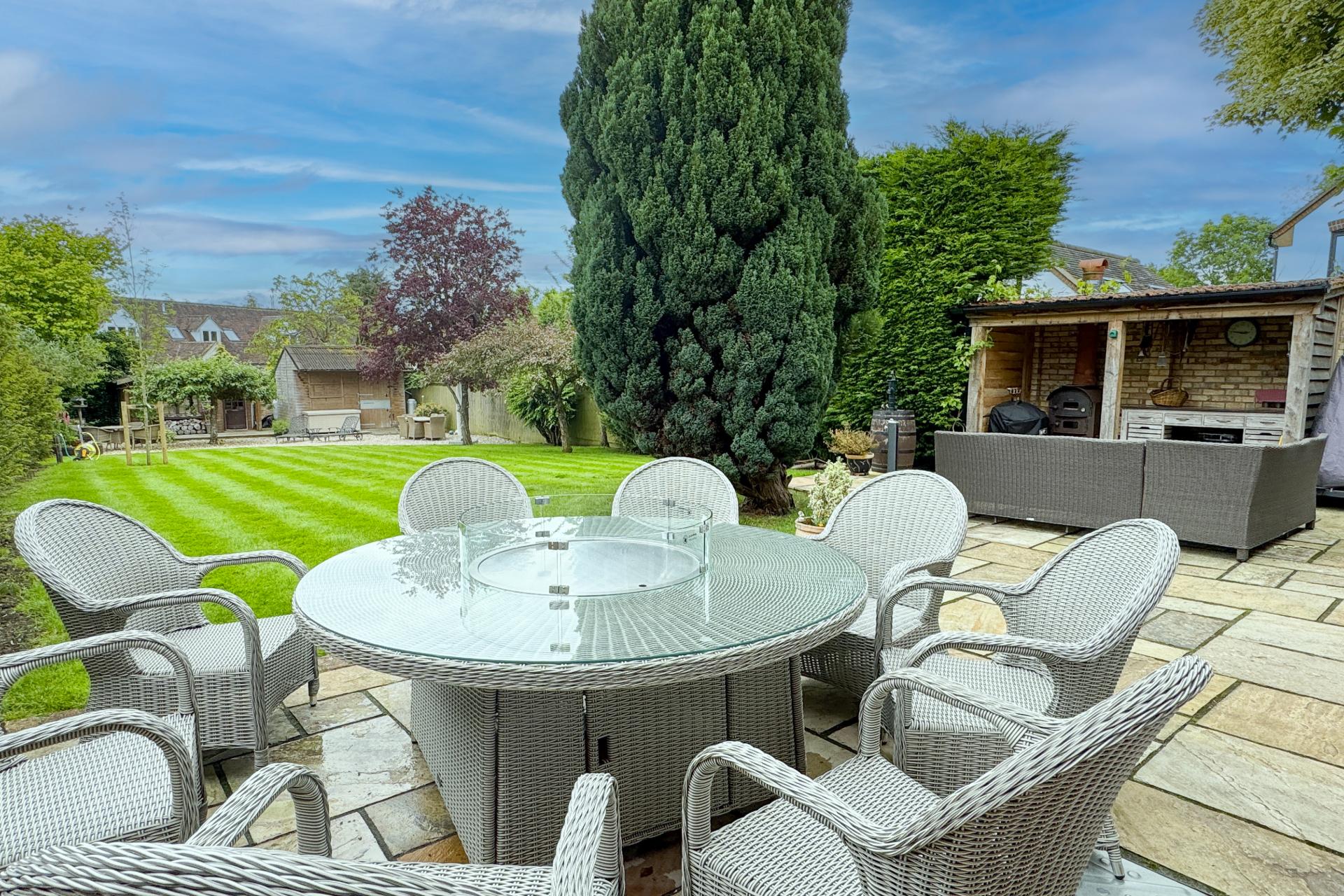 The expansive garden features a fully equip office with electric, Wi-Fi and air conditioning. The beautiful stables offering vast storage space. The generous entertainment terrace is complemented by a wonderful undercover outdoor kitchen area with pizza oven. The garden is predominantly laid with lush lawn, surrounded by mature shrubs, trees, and borders. Various seating areas offer ideal spots to enjoy the sunshine and the picturesque village surroundings. The property is heated by oil-fired central heating, with the system controlled by a Nest device. All upstairs rooms, kitchen and living room have been installed with integrated window blinds. EPC: D Council Tax: F