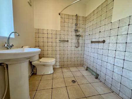 Bedroom three is a spacious double aspect room with windows to the front and side elevation and a fitted storage cupboard. Bedroom four is another double aspect room with windows to the side and front elevation and fitted storage cupboard. Bedroom five is another double, with a window to the side elevation and an en-suite wet room, which includes a direct-feed shower unit, tiled splashbacks, a low-level WC, and a pedestal wash hand basin.