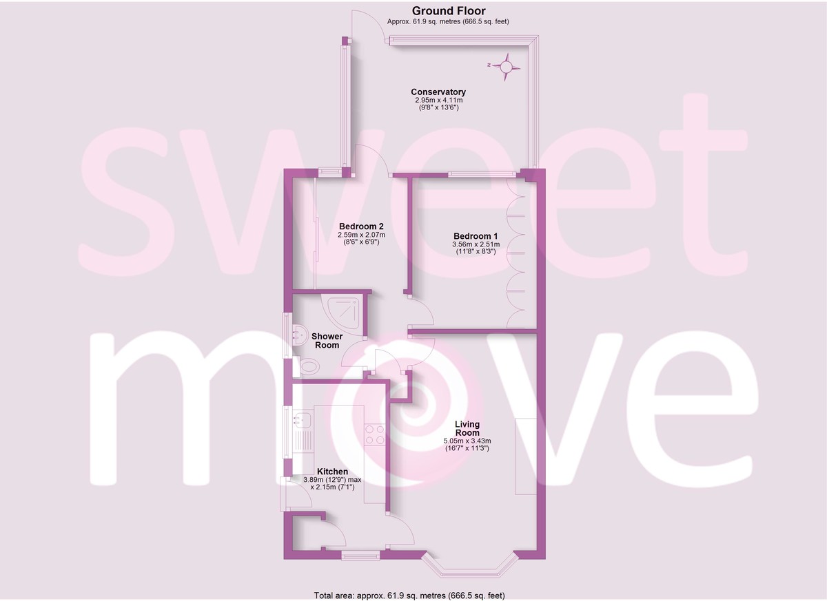 CONSERVATORY 9' 8" x 13' 6" (2.95m x 4.11m) Door to rear garden, laminate flooring, storage heater.