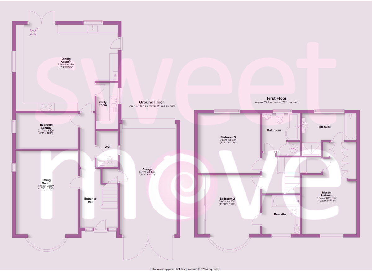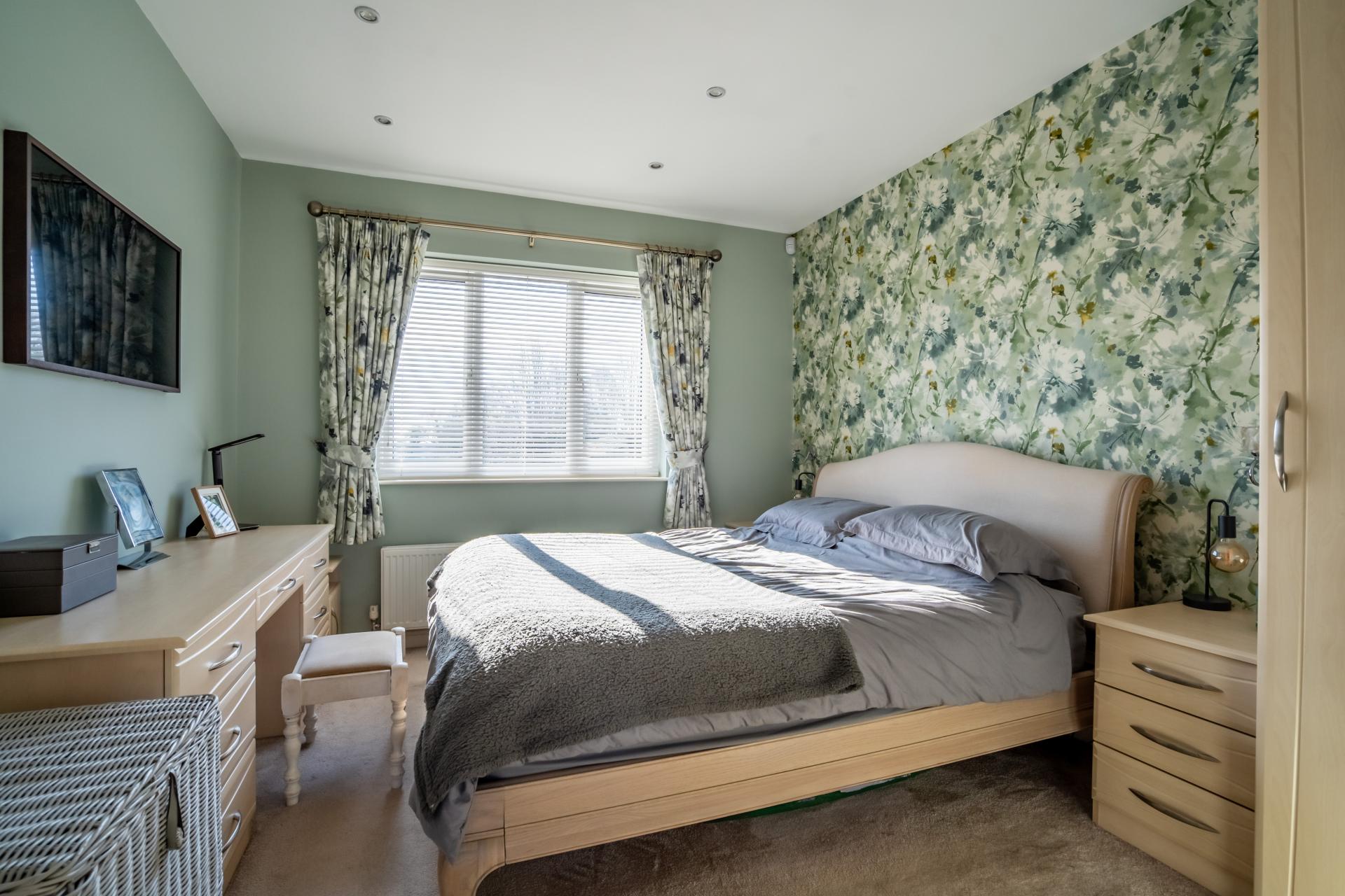 Upstairs, the elegant master suite boasts a dressing area with built-in wardrobes and a luxurious en-suite featuring both a bath and shower. The second bedroom also benefits from an en-suite and enjoys views to the front, while a stylish family bathroom serves the remaining bedroom.