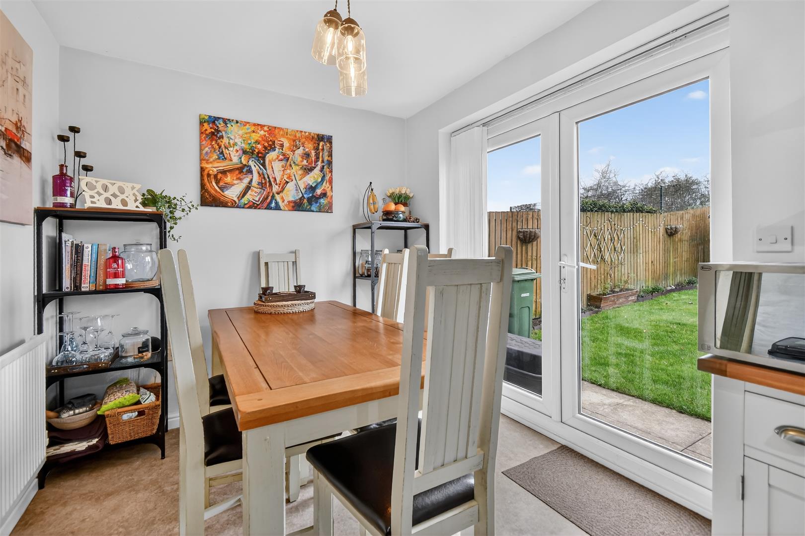 The DINING AREA enjoys a garden elevation with a glazed door opening onto the terrace and lawn, creating an effortless flow ideal for everyday living and summer entertaining.