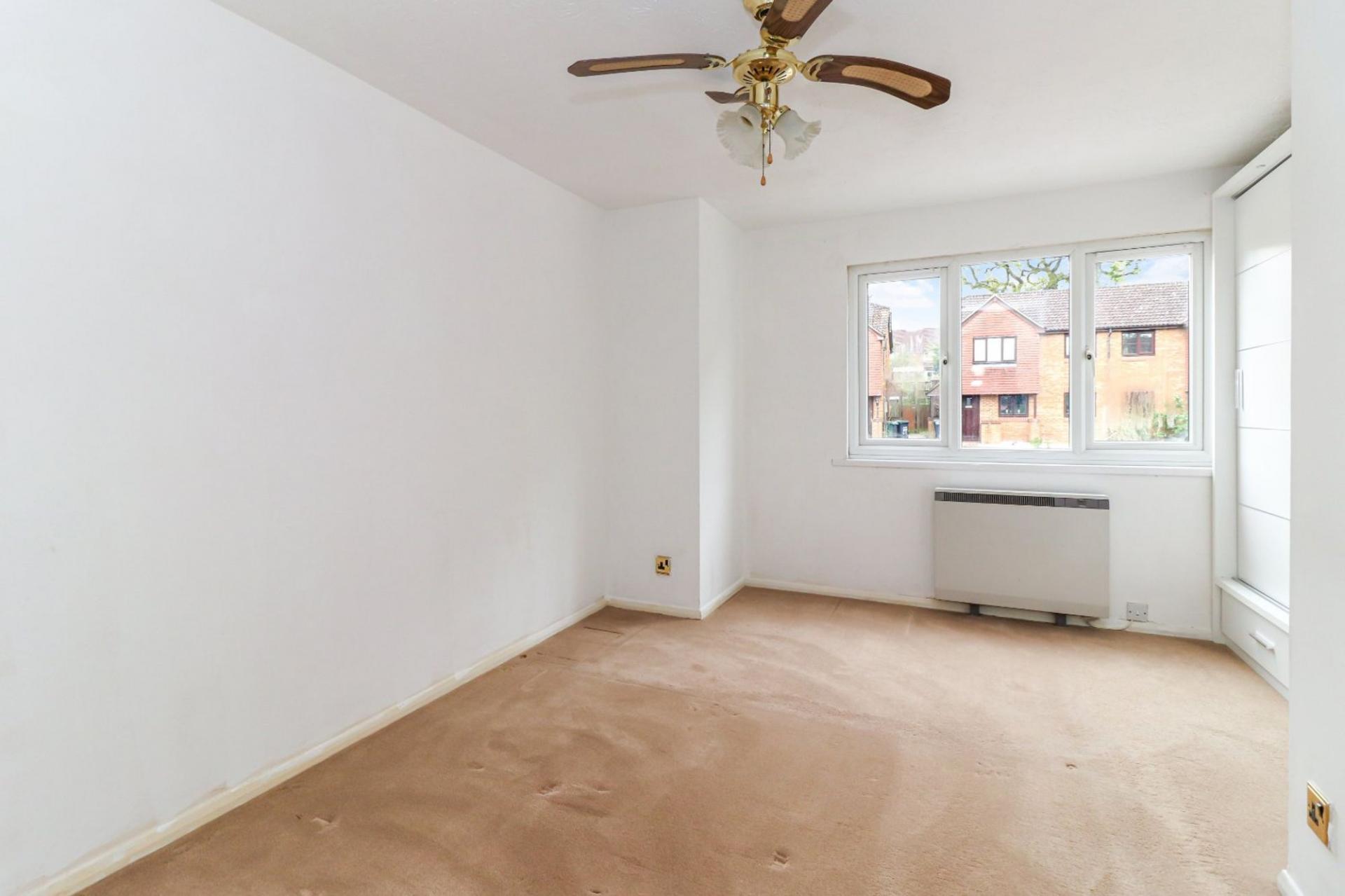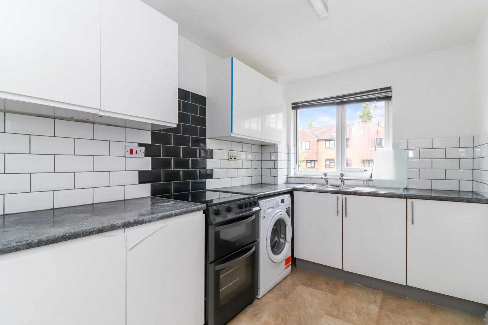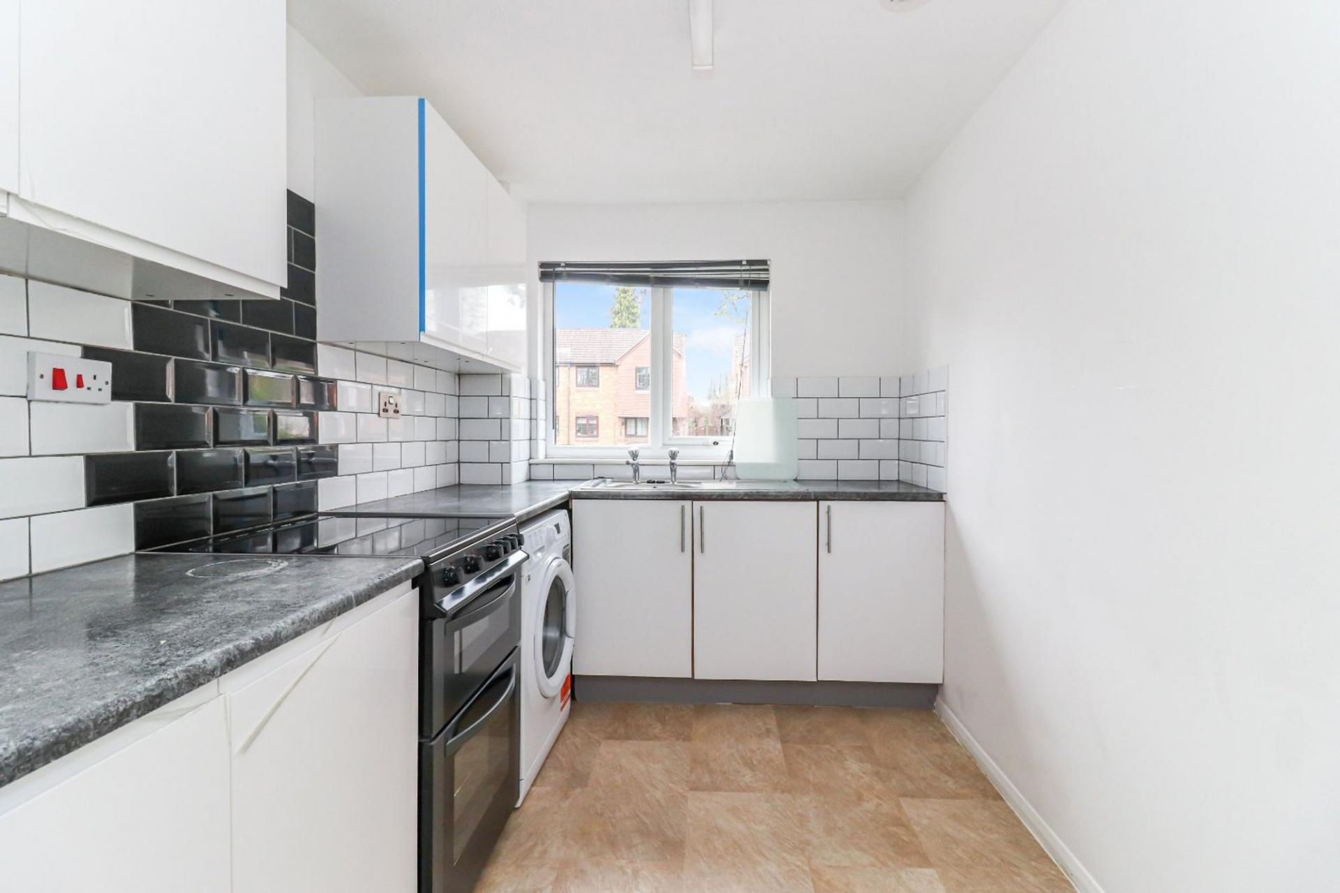 The open plan sitting room is neutral in decor and offers plenty of space for freestanding furniture, whilst offering a rear aspect window that overlooks the garden. The kitchen is fitted with a range of white wall and base units with work surfaces over and freestanding (fitted) appliances.
