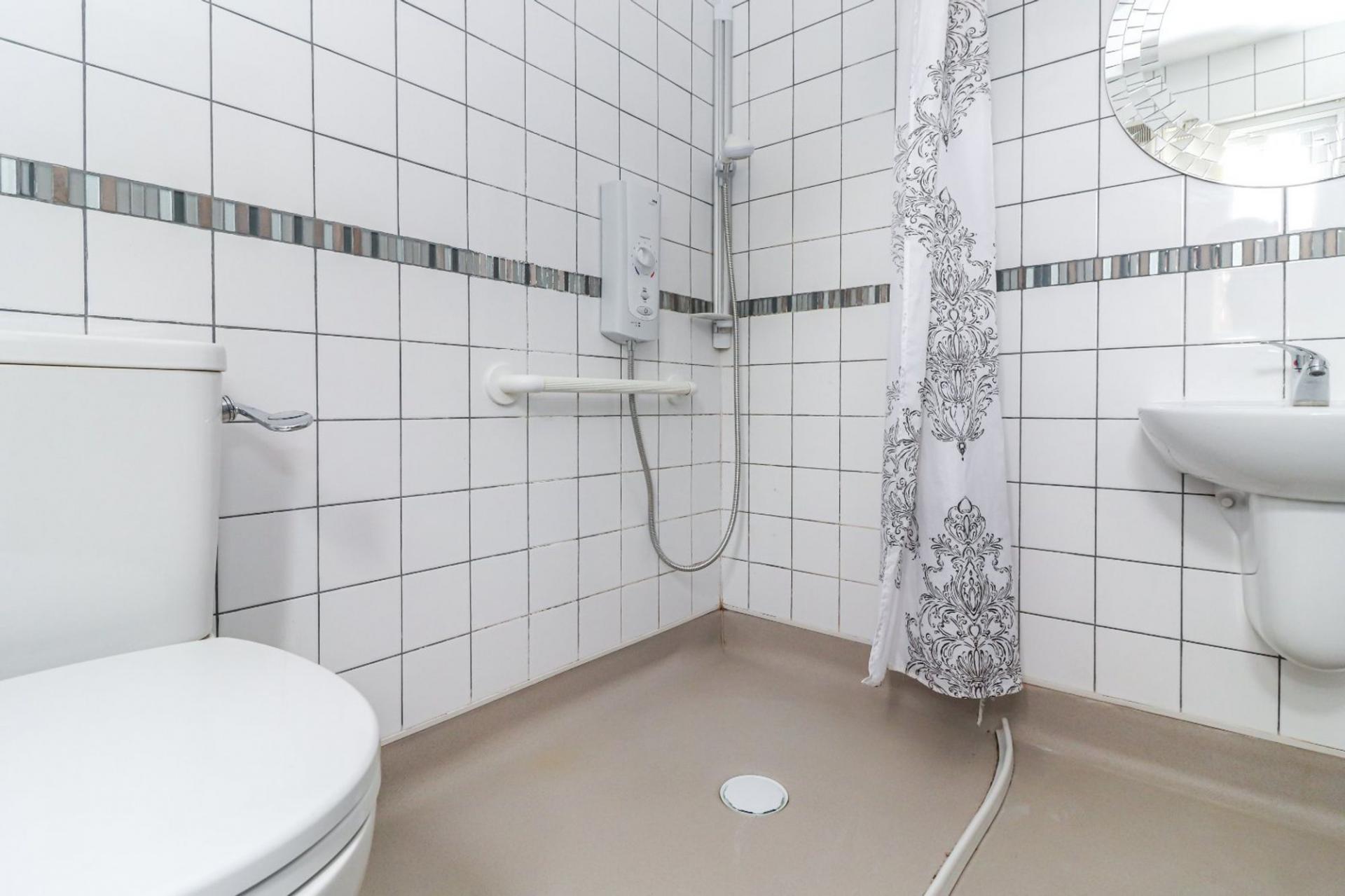 The double bedroom is of a generous size and offers fitted wardrobes with storage over. The bathroom is located just across from the bedroom and has been designed as a wet room with a full height shower, low level W/C and wash hand basin, whilst being fully tiled.
