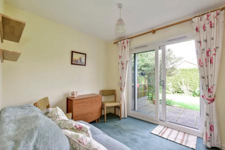 Both bedrooms are generously sized and benefit from plenty of natural light, with the main bedroom providing built-in wardrobe for additional storage and the second bedroom offering direct access out to the gardens. The shower room is easily accessible, designed with comfort in mind.