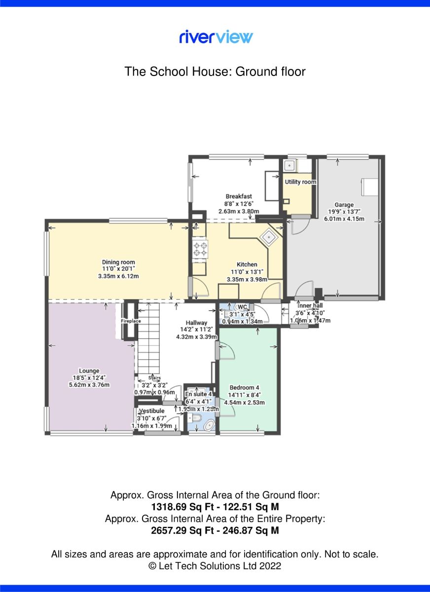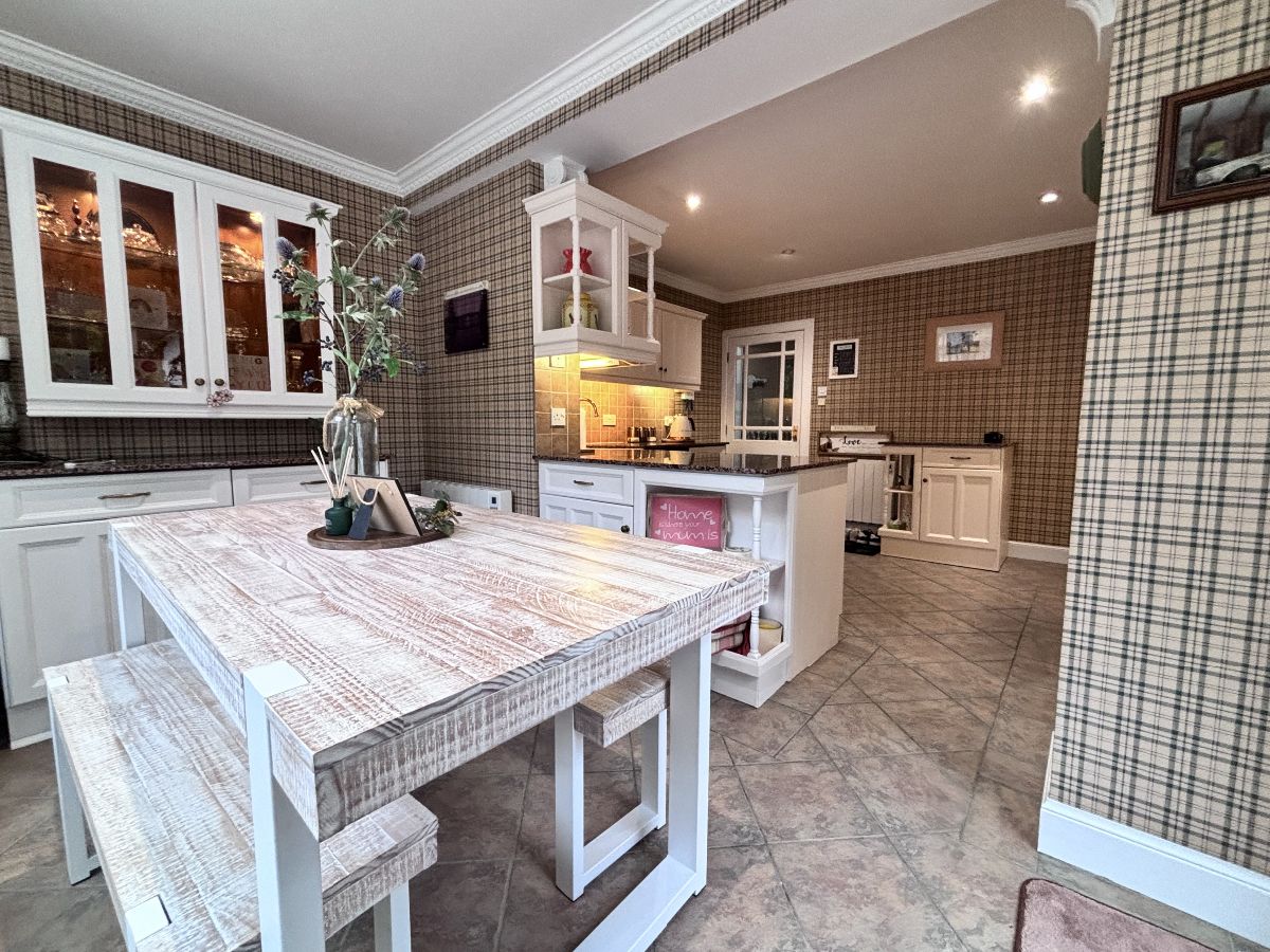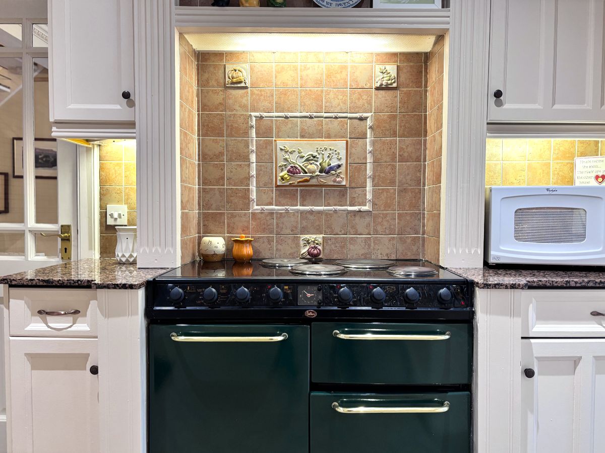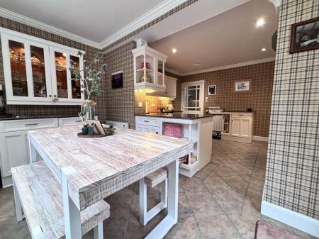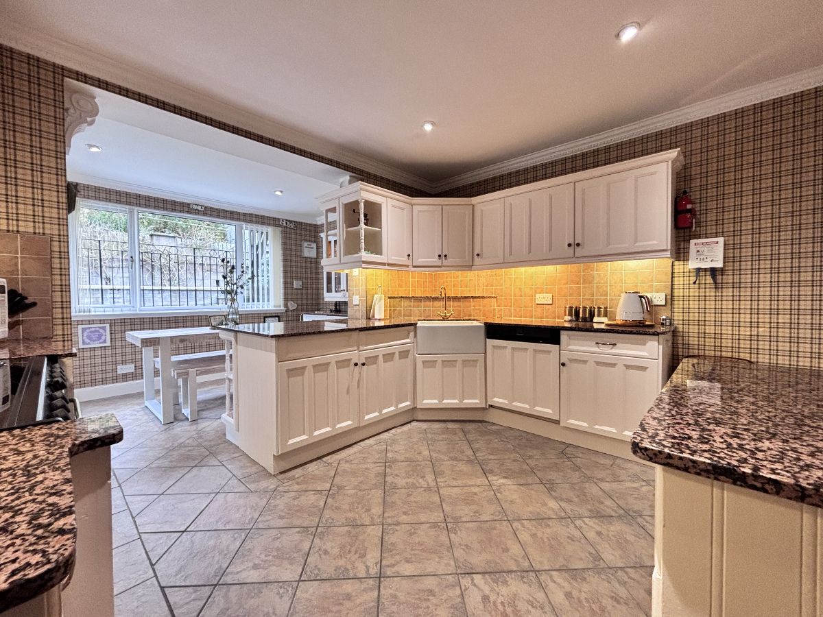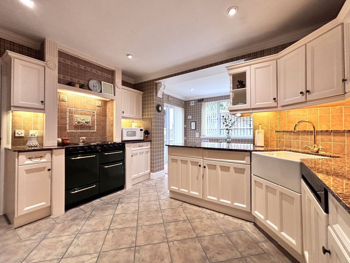 The stylish kitchen is fully equipped with integrated and free-standing appliances, including a feature range cooker. There's ample space for informal dining and direct access to the rear garden, offering convenience for indoor-outdoor living.