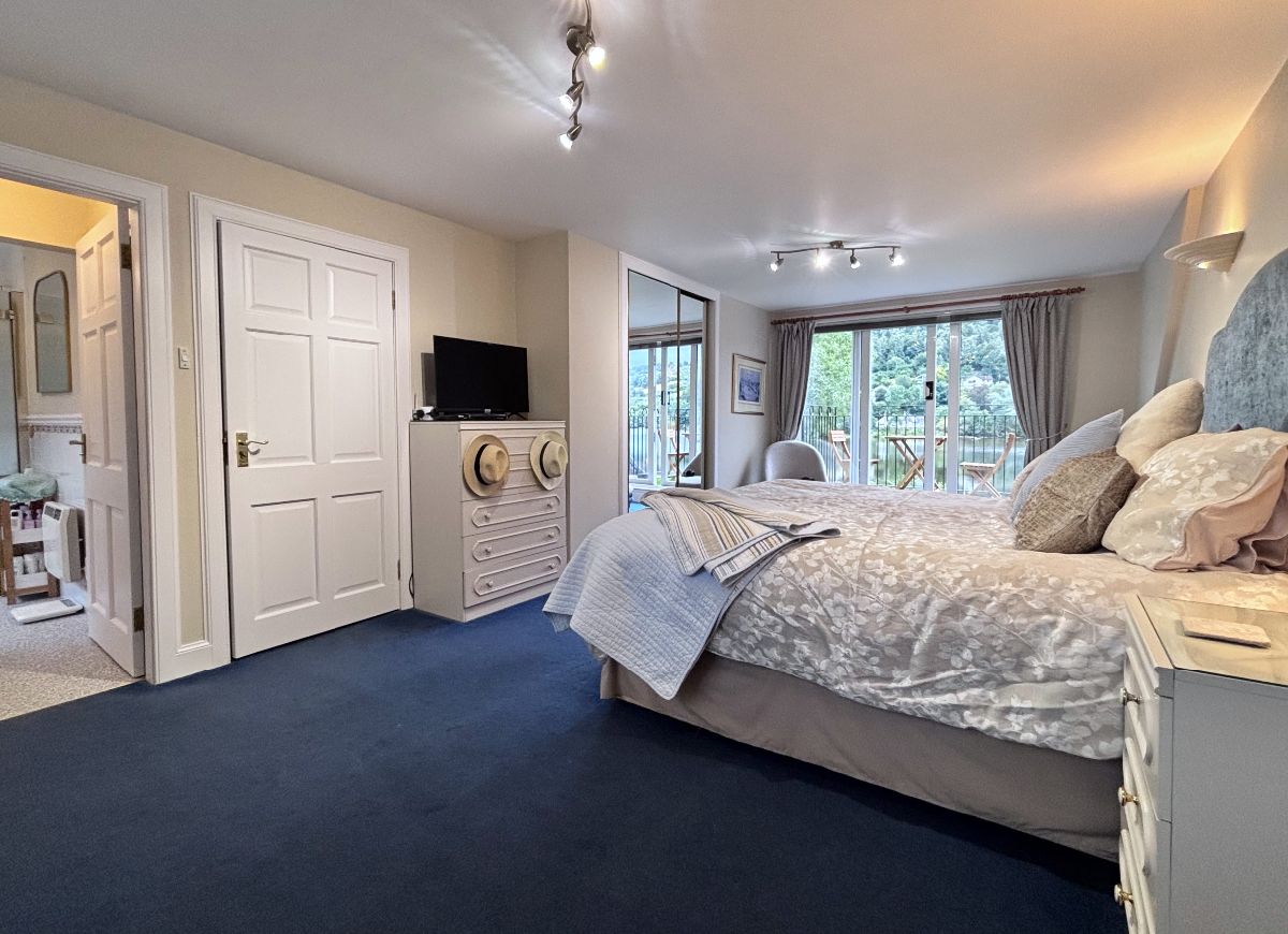 Upstairs, the principal bedroom is a true showstopper - a light-filled sanctuary with dual-aspect views and French doors leading out to a private balcony overlooking the loch. This room also features a well-appointed en-suite bathroom and excellent storage. Two additional en-suite double bedrooms complete the upper level.