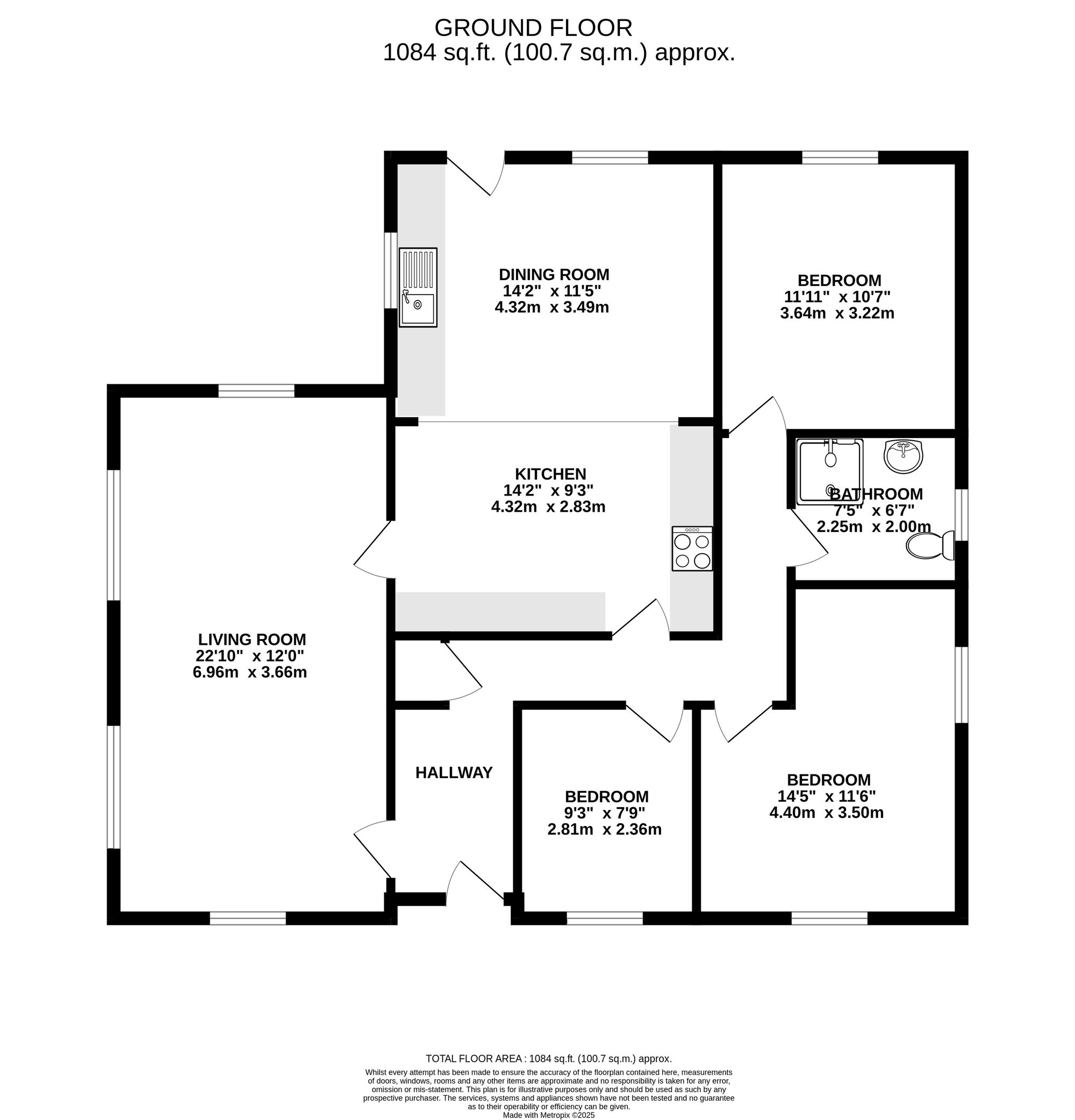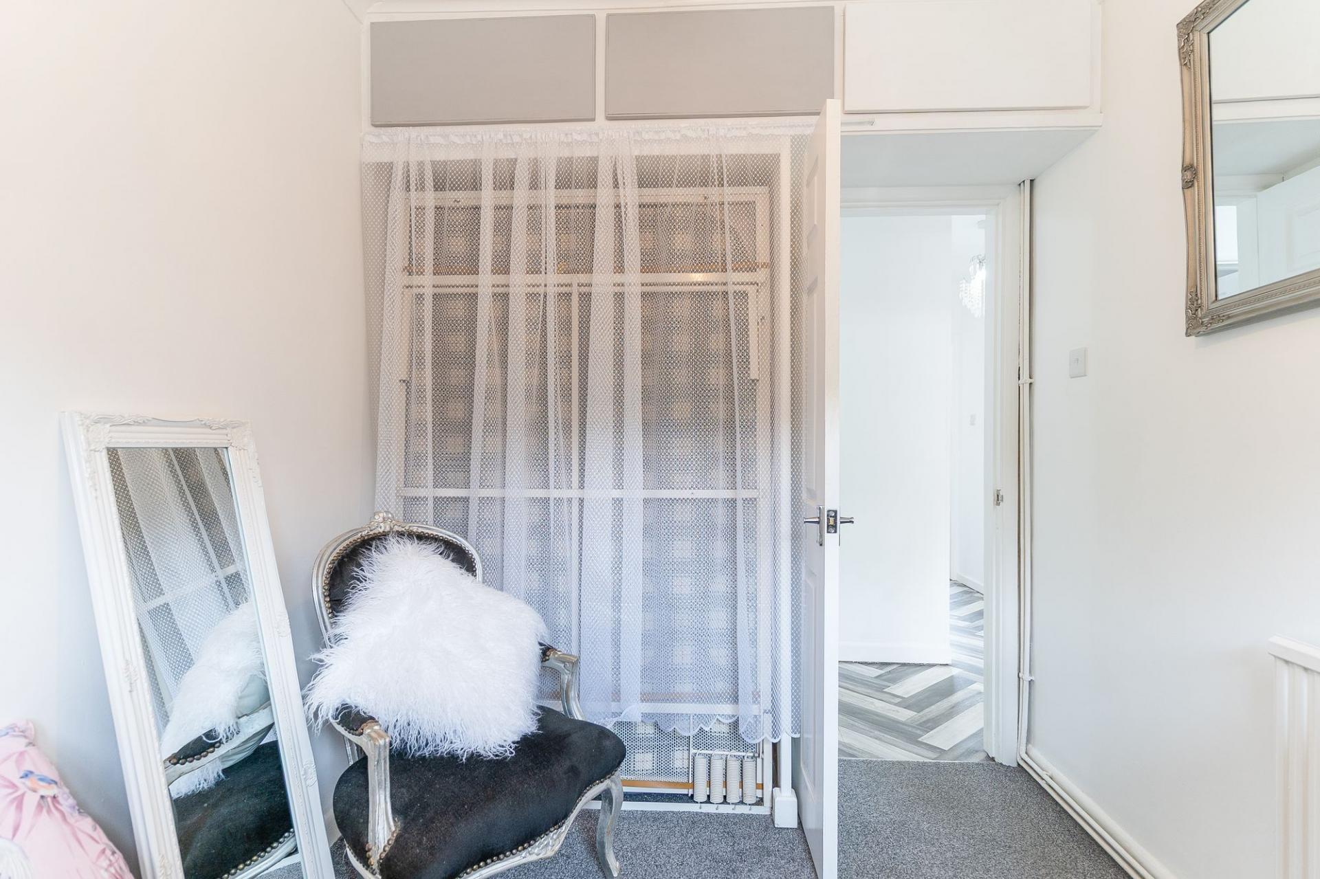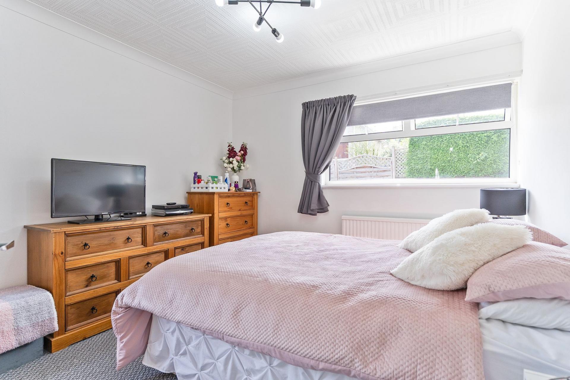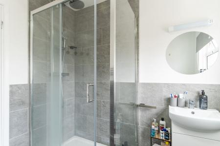 All three bedrooms are located on the ground floor, providing convenient single-level living. There are two generously sized double bedrooms, both offering pleasant outlooks and ample room for furnishings. The third bedroom is currently utilised as a home office, cleverly incorporating a built-in pull-down bed, making it a flexible space for guests. Completing the interior is a stylish and modern shower room, fitted with contemporary fixtures and a walk-in shower.