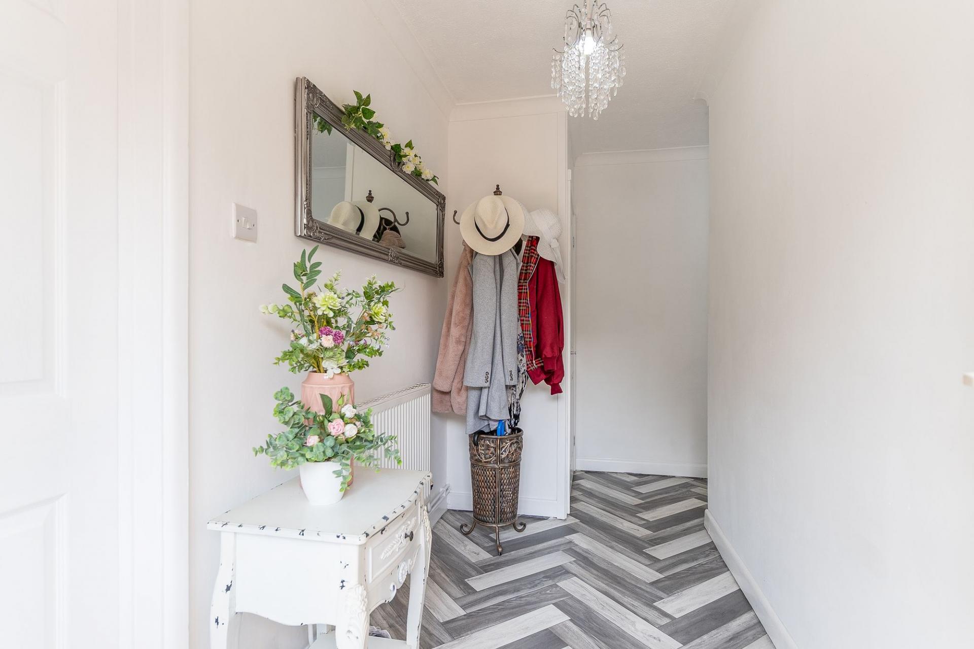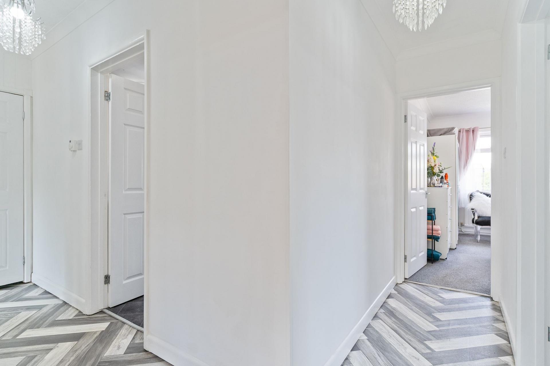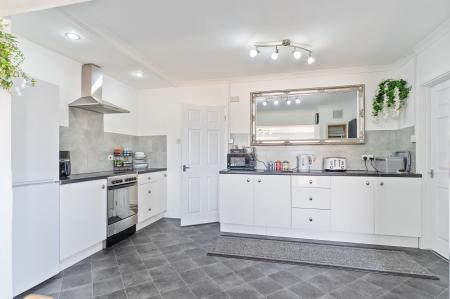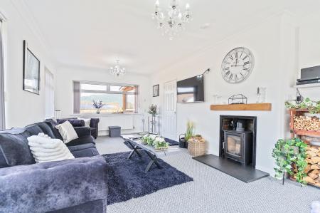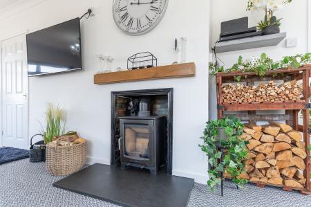 The property is naturally bright throughout and boasts a tasteful modern décor, offering a warm and welcoming atmosphere. The heart of the home is the spacious lounge, which enjoys triple aspect windows allowing natural light to flood the room throughout the day. A feature log burner fireplace adds character and warmth, and there is ample space for a variety of seating arrangements. Adjacent to the lounge is the open-plan kitchen and dining area – a sociable and functional space with direct access to the rear garden, ideal for entertaining or enjoying family meals. The kitchen is well-equipped with contemporary fittings and storage solutions, while the dining area comfortably accommodates a full-sized table.