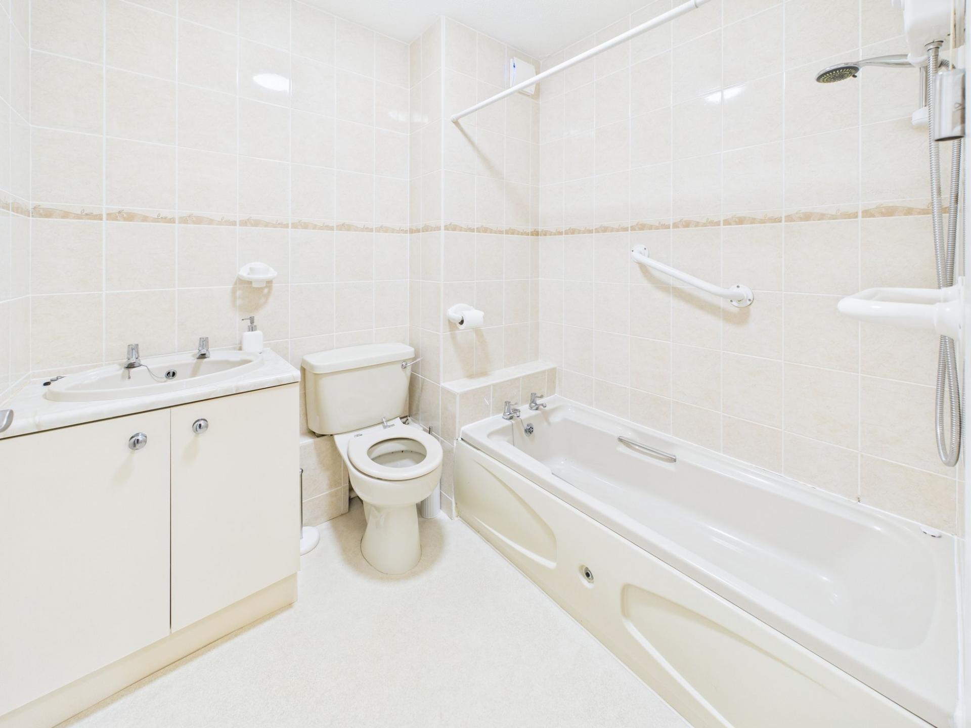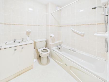 - Bathroom with low level easy access bath and shower over
