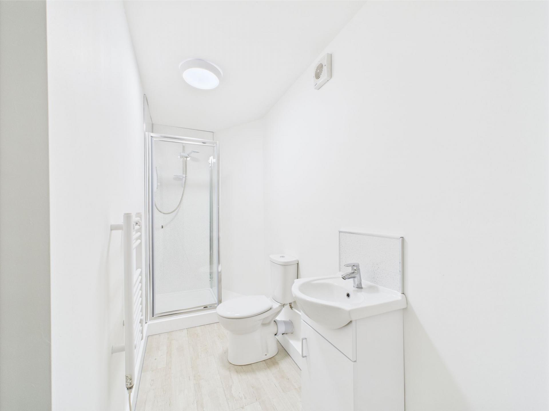 - White shower suite