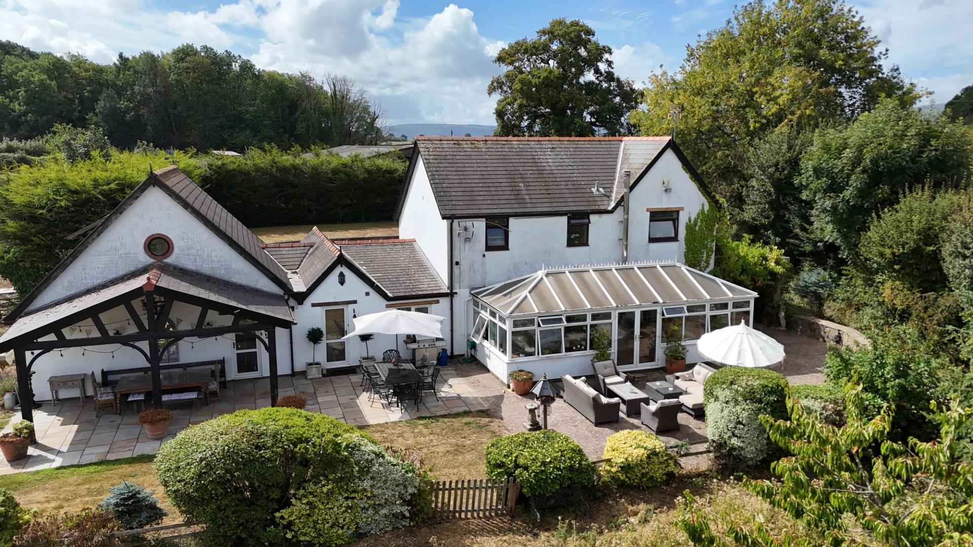 - Superb long distance views over the Monmouthshire countryside towards the Little Skirrid from a large sun terrace with oak loggia