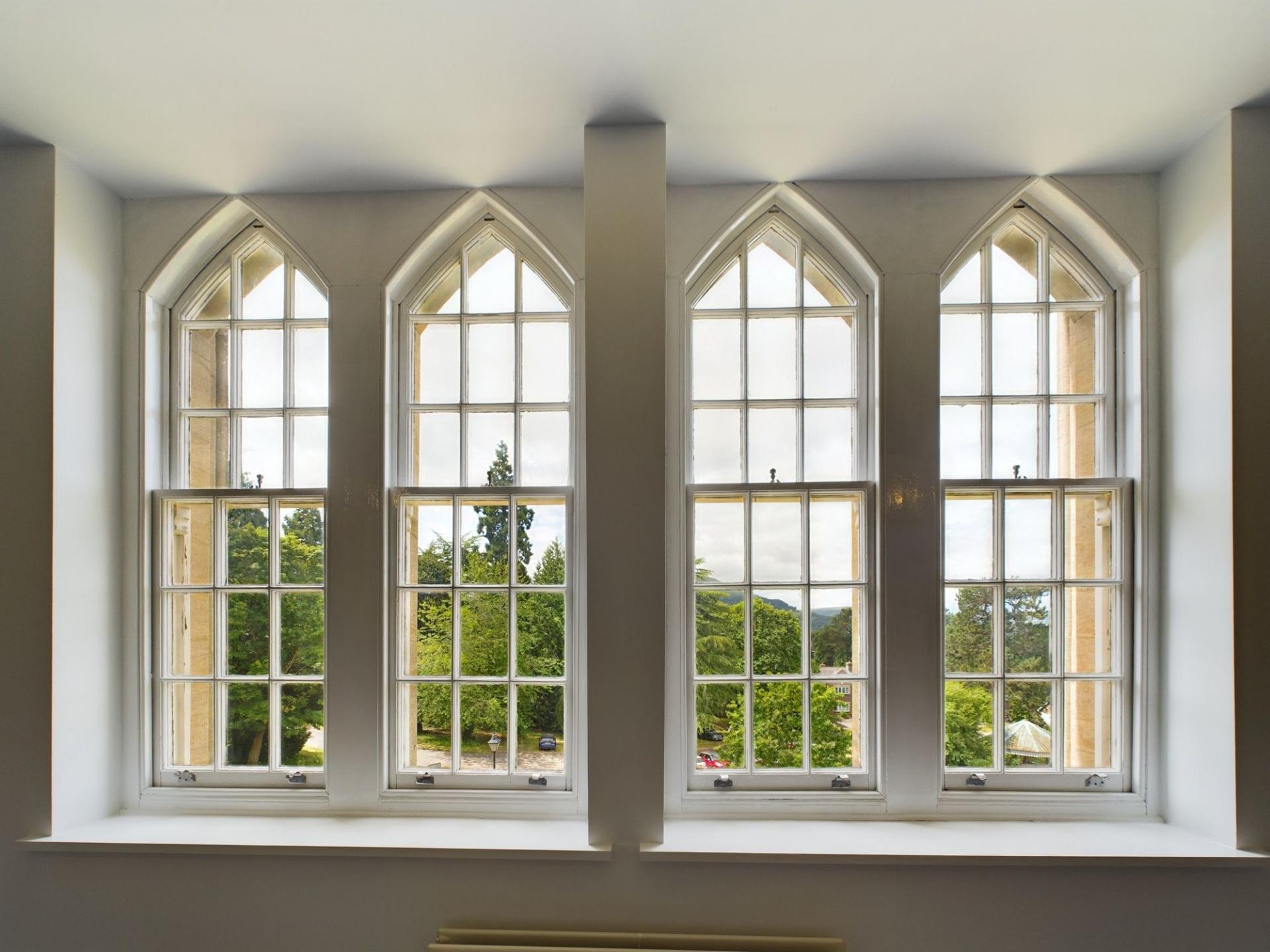 - Magnificent Living Room with tall arched windows overlooking with view of the Blorenge