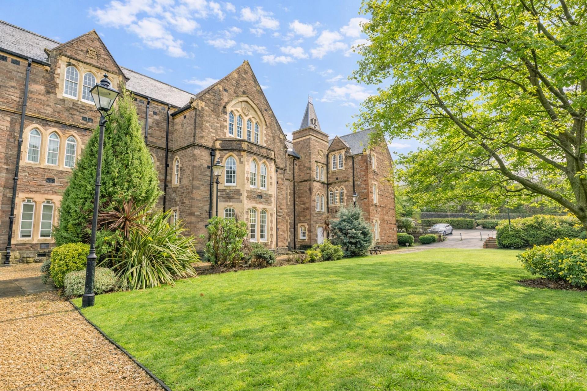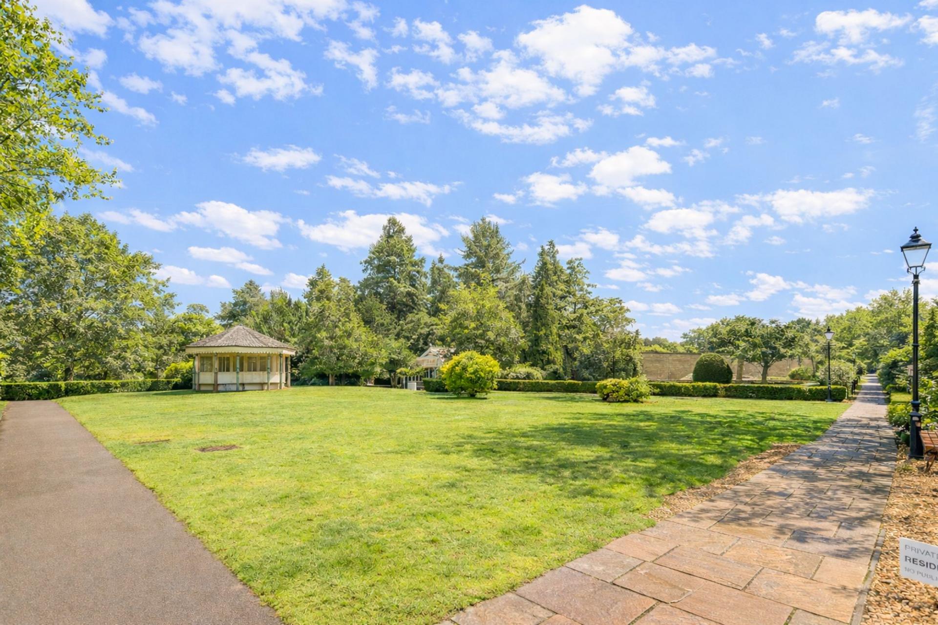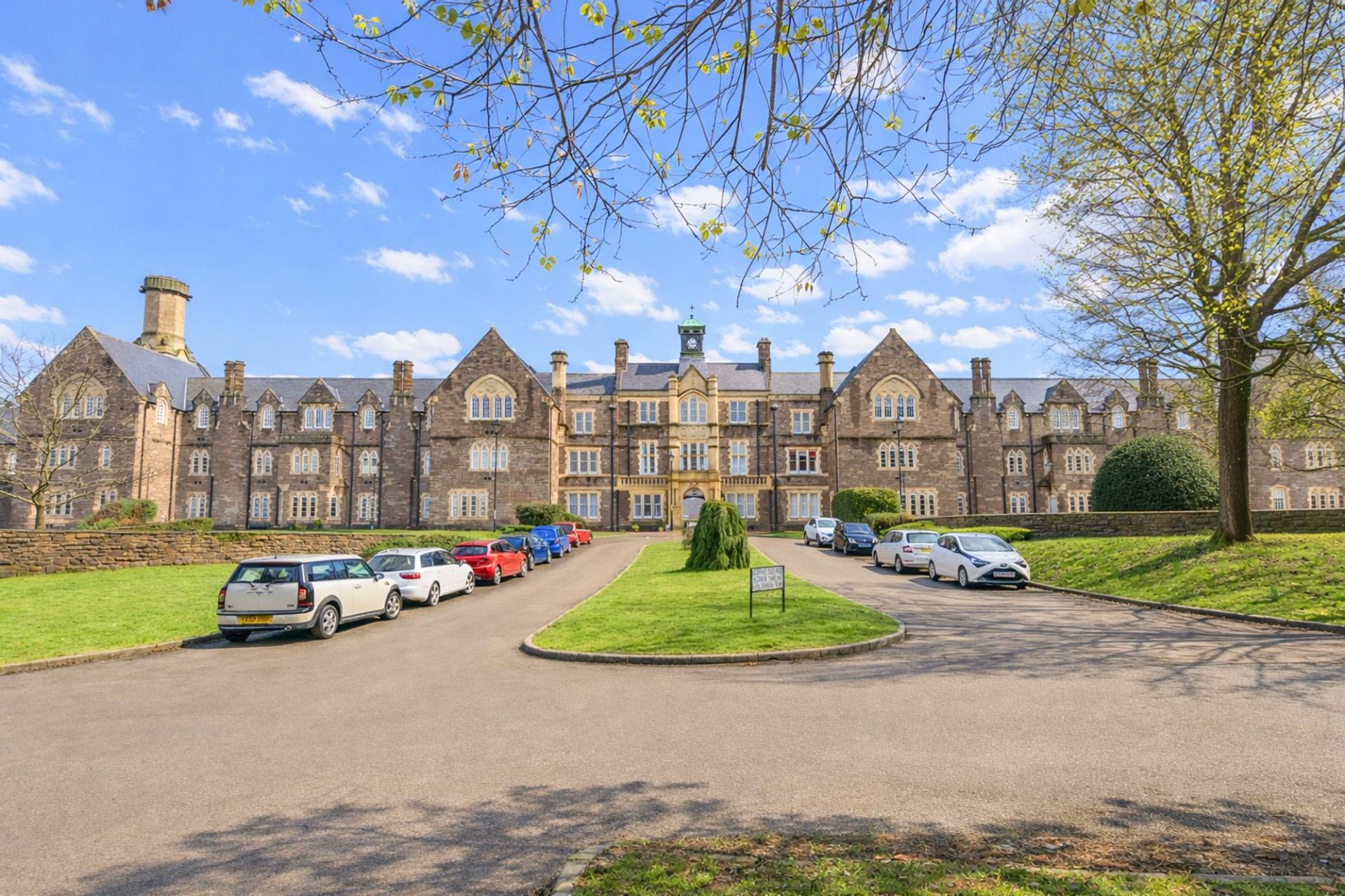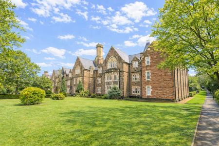Externally, residents enjoy excellent parking provision, with a large arched driveway directly in front of the building and an additional spacious car park just a short distance away. The surrounding grounds are particularly attractive, offering extensive, well-maintained lawns ideal for leisurely walks. Original Victorian-era pavilions are dotted throughout the grounds, adding charm and character to this unique setting and providing a pleasant outdoor environment rarely found so close to the town centre.