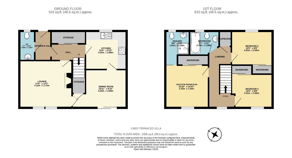 Master bedroom w: 3.3m x l: 3.3m (w: 10' 10" x l: 10' 10")