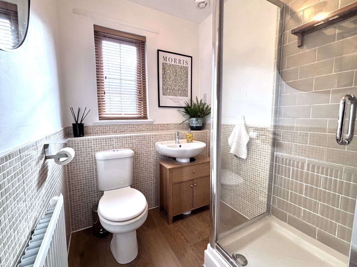 With ample residents parking to the front. Path leads to covered porch and to front door. Welcoming entrance hall with WC to side. Further door opens to main hall and fitted storage cupboard. The delightful lounge with quiet rear aspect boasts ample space for typical lounge furniture and a lovely outlook to garden. The fitted kitchen boasts a generous array of cupboard storage and work-surfaces with space for free-standing appliances and integrated oven & hob. The dining room is conveniently situated between the kitchen and lounge and gives access to the rear garden. Stairs to first floor with light airy landing and access to floored attic. There are three generously proportioned double bedrooms all boasting fitting storage with the master bedroom boasting an en-suite shower room with mains shower. The stylish family bathroom with electric shower over bath and upgraded fittings completes the accommodation.