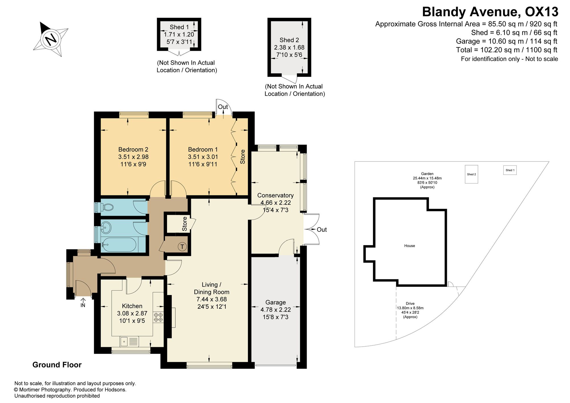 - Front gardens providing hard-standing parking facilities for several vehicles leading to garage