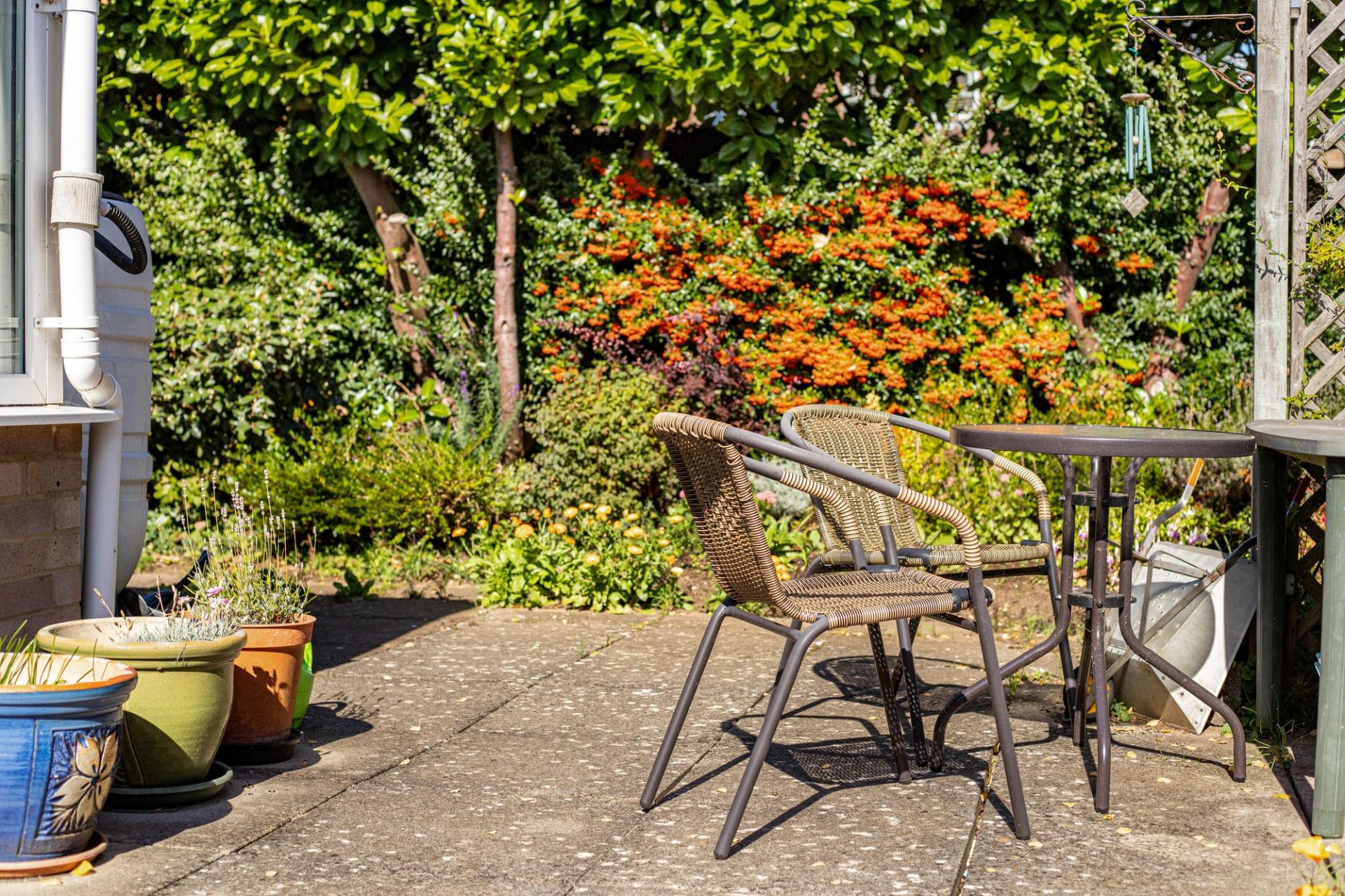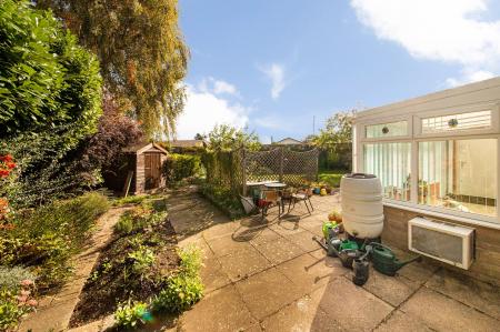 - Large fully enclosed corner plot rear gardens with patio and lawns and offering vast potential to extend the existing accommodation