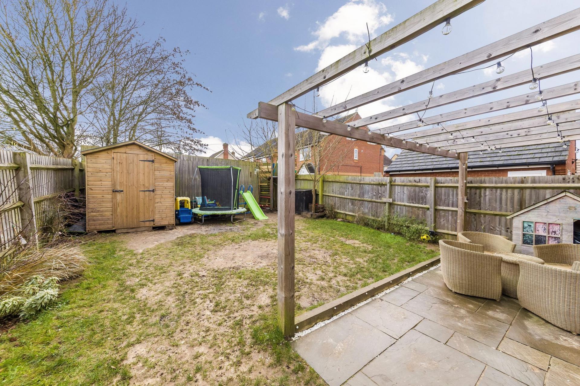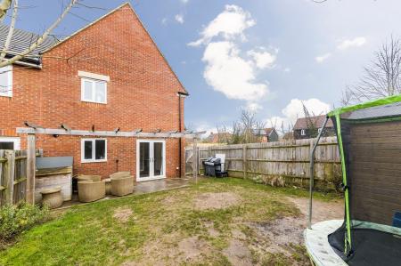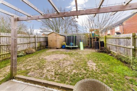 - South facing rear gardens incorporating patio with pergola over leading to lawn and wooden garden store - the whole enclosed by fencing and mature shrubbery