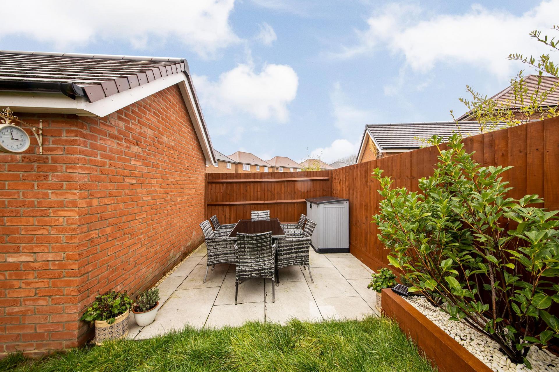 - Externally the property benefits from a full width paved terrace with a predominance of lawn and alfresco dining area to the rear of the garage. There is gated side access to the driveway