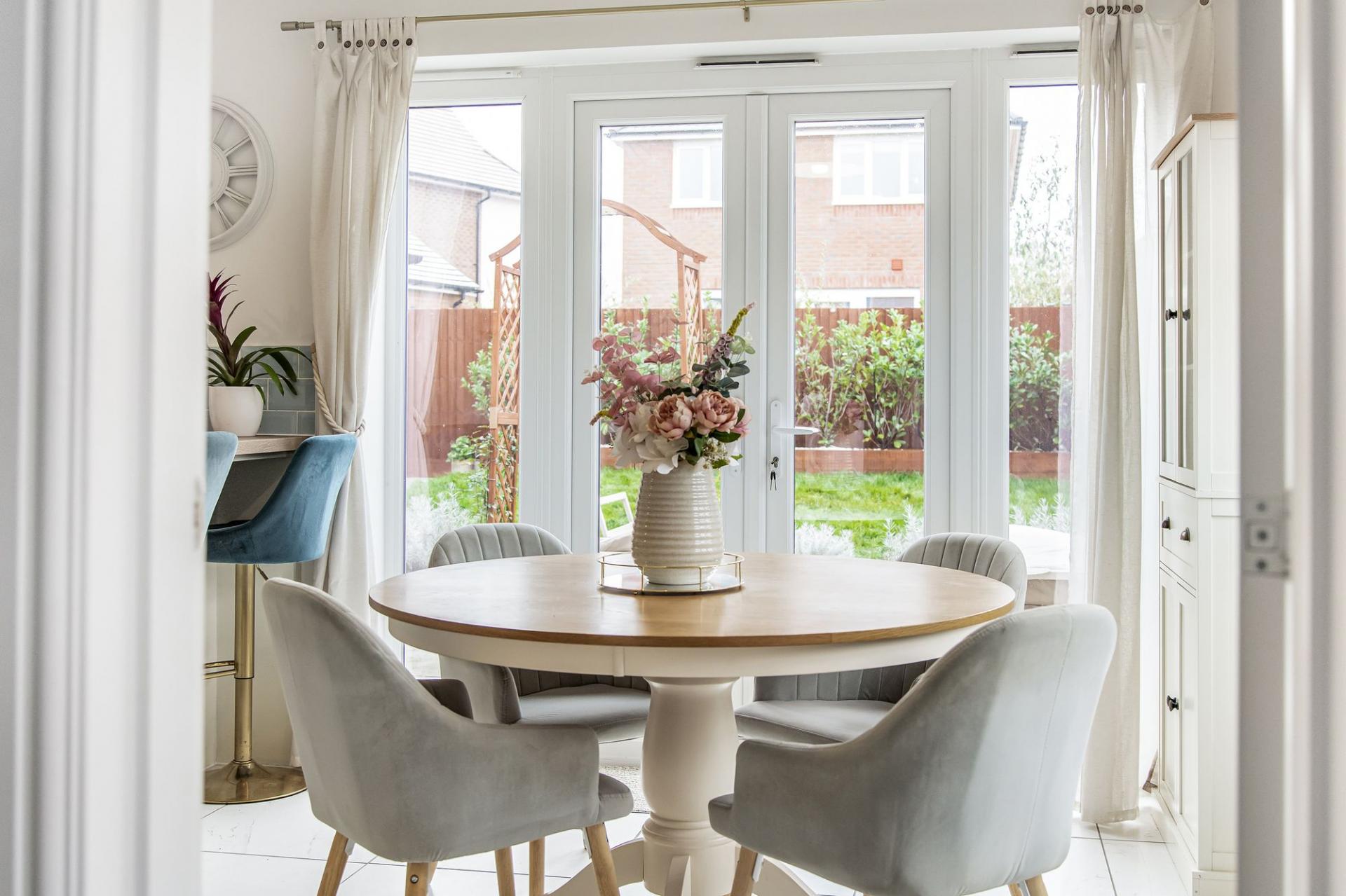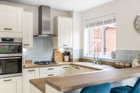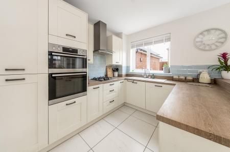 - The spacious modern kitchen features integral appliances, breakfast bar and ample room for dining, complimented by a separate utility room with door leading out to the side