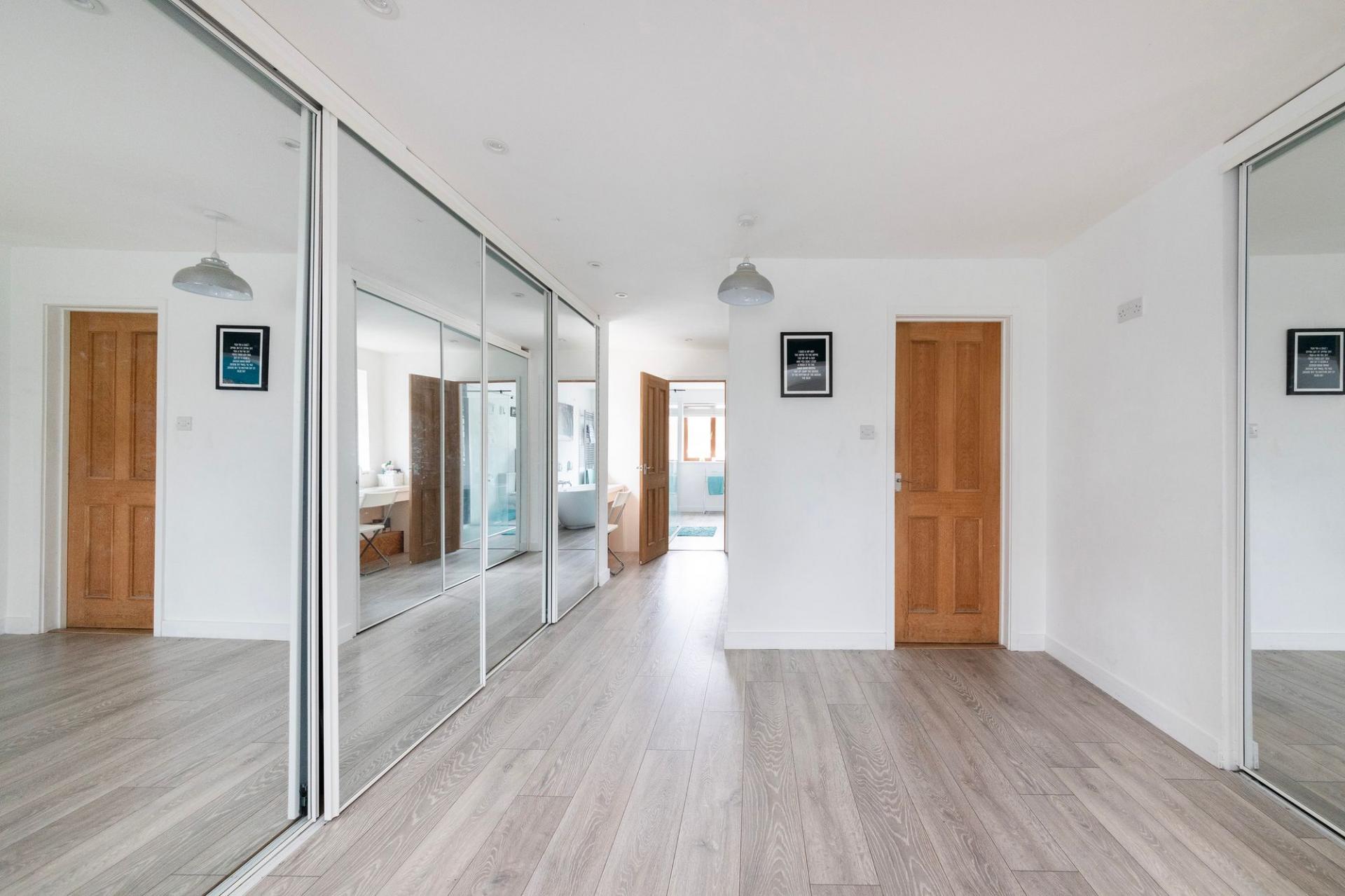 - Impressive and very large principal suite comprising of good size double bedroom area, dressing room with an extensive selection of built-in wardrobe cupboards and en-suite bathroom with white sui...