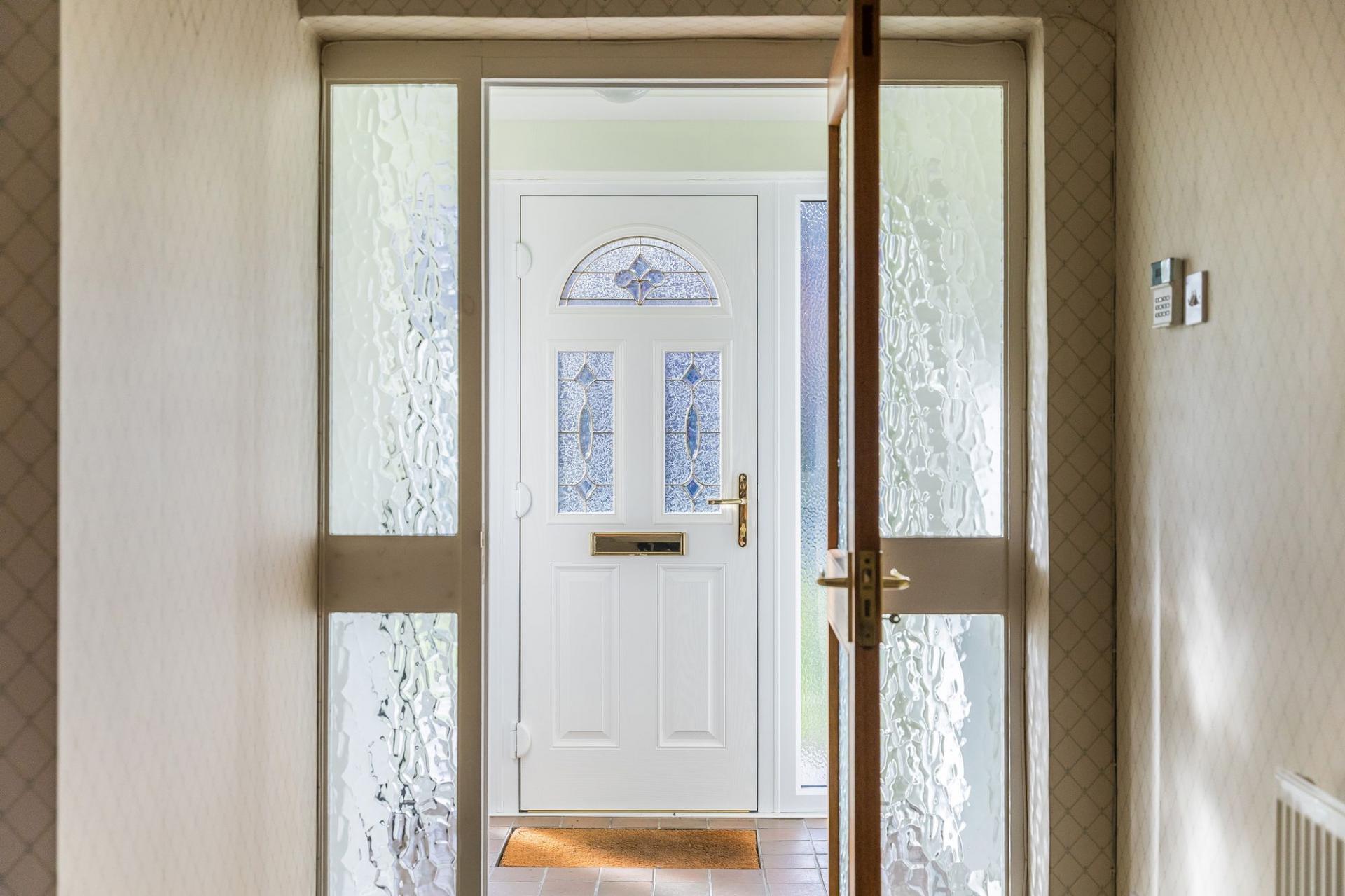 - Entrance porch opening into a spacious reception hall with doors to all principal rooms and stairs rising to the first floor