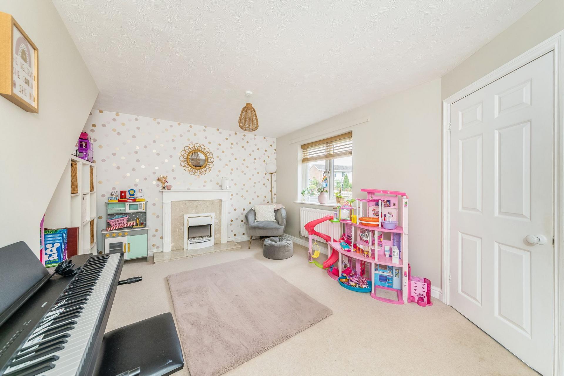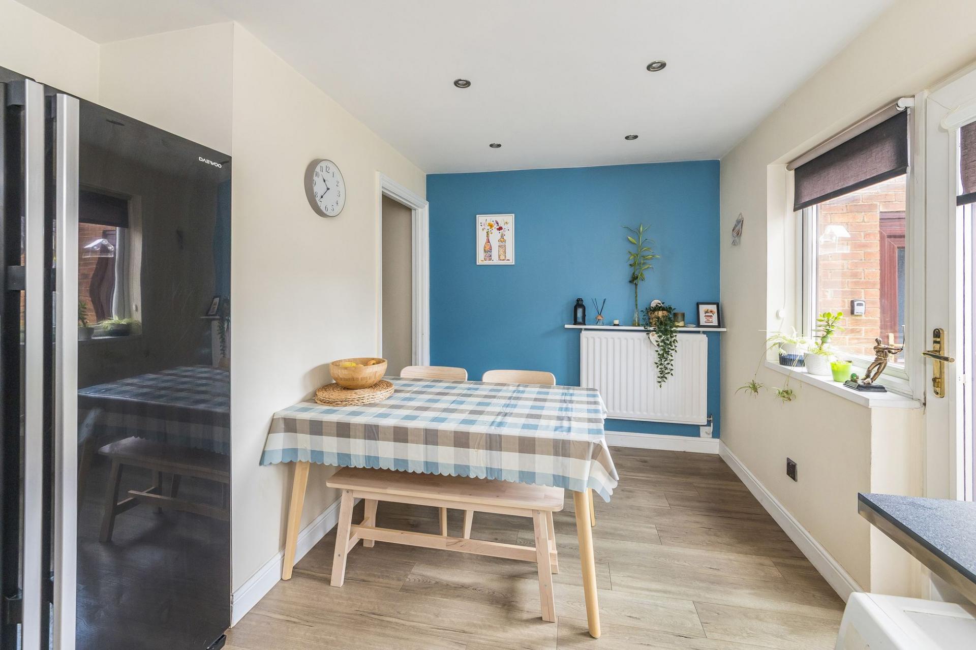 - Highly versatile front aspect reception room with feature fireplace ideal for use as a living room or formal dining room