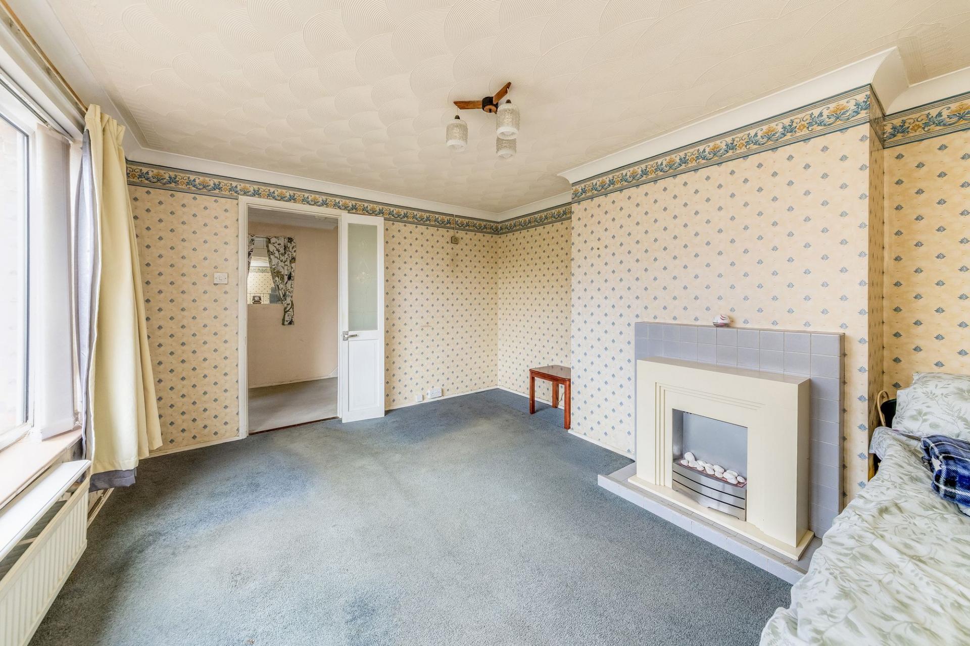 - Entrance hall leading to spacious separate front living room with fireplace