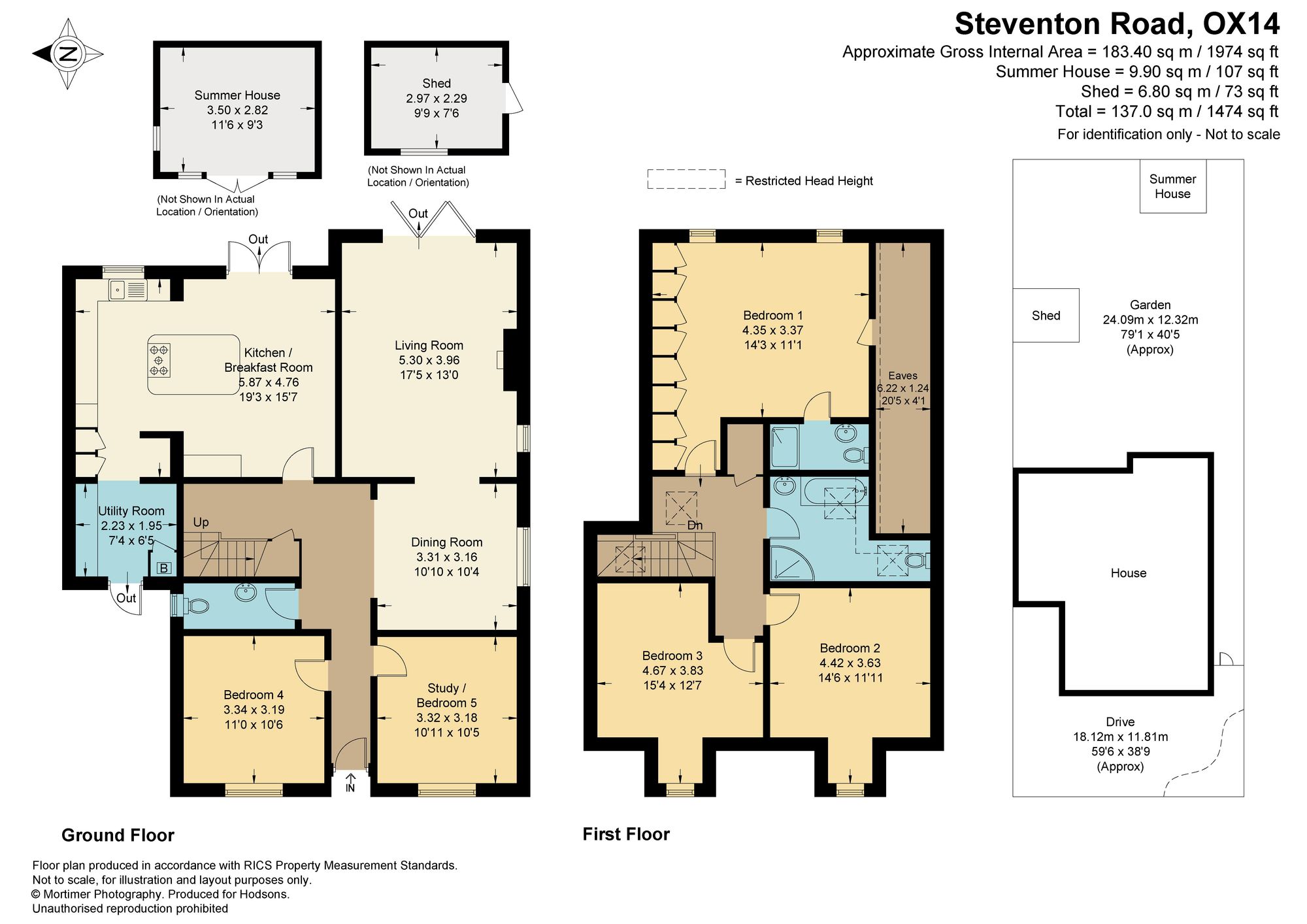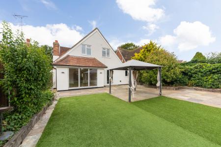 - Large 79` x 40` rear gardens featuring extensive patio and artificial lawn, leading to large garden summerhouse/outbuilding with light and power and a further garden store - enclosed by fencing