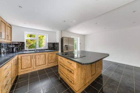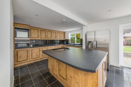 - Large and well equipped open plan kitchen/breakfast room offering an excellent selection of floor and wall units complemented by several built in electrical appliances and double doors to gardens