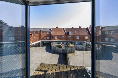 - Delightful second floor double aspect living room with French doors to an east-facing balcony and patio doors to a larger west-facing balcony