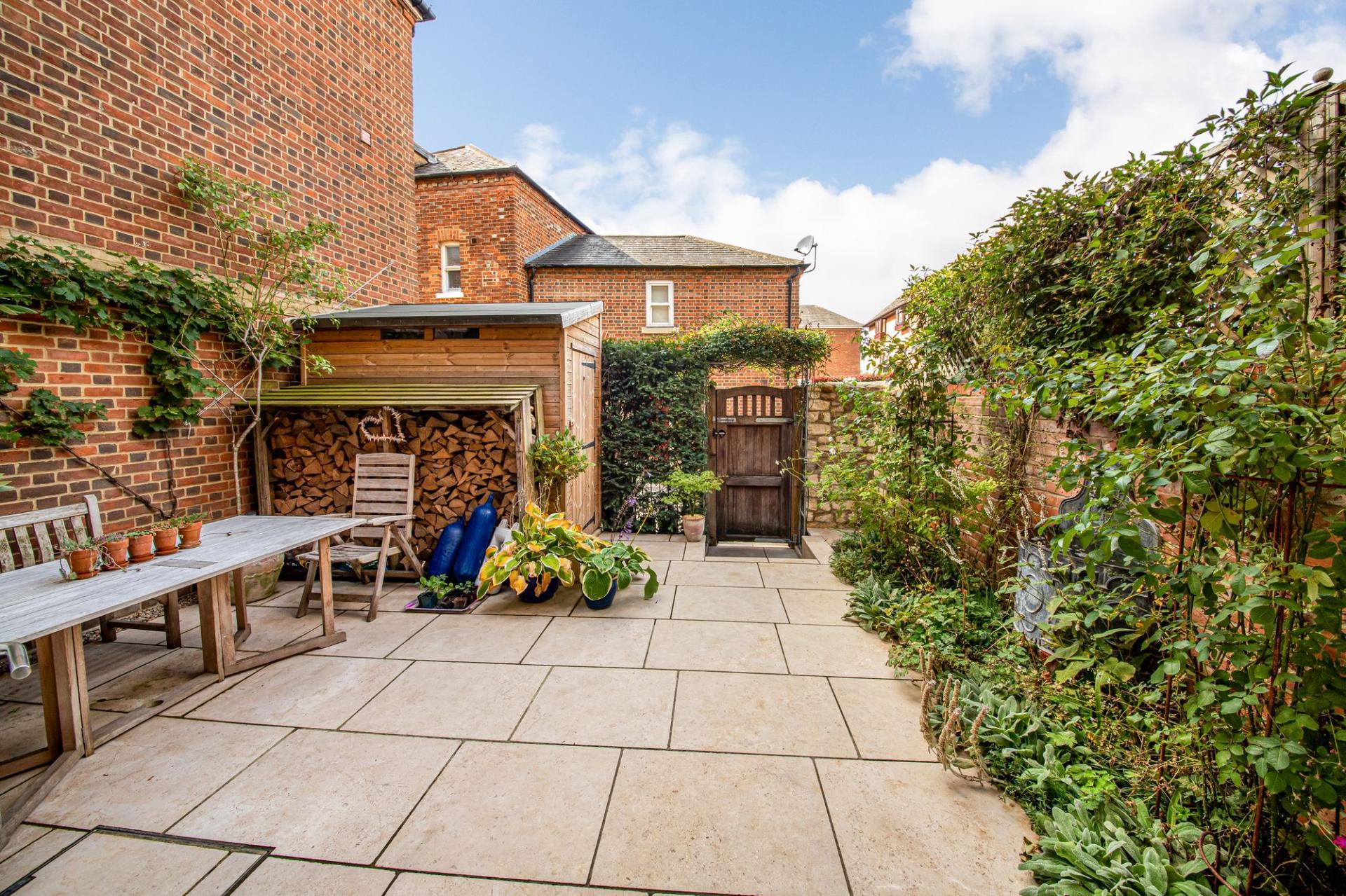 - Landscaped garden with gated access to two parking spaces