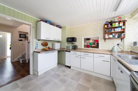 - Spacious kitchen offering a good selection of floor and wall units complemented by walk-in larder cupboard. Enclosed rear porch with doors to gardens and separate utility room