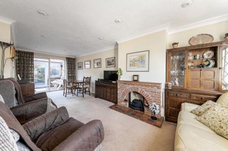 - Entrance hall leading to spacious double aspect living room through to the dining room featuring an attractive brick fireplace