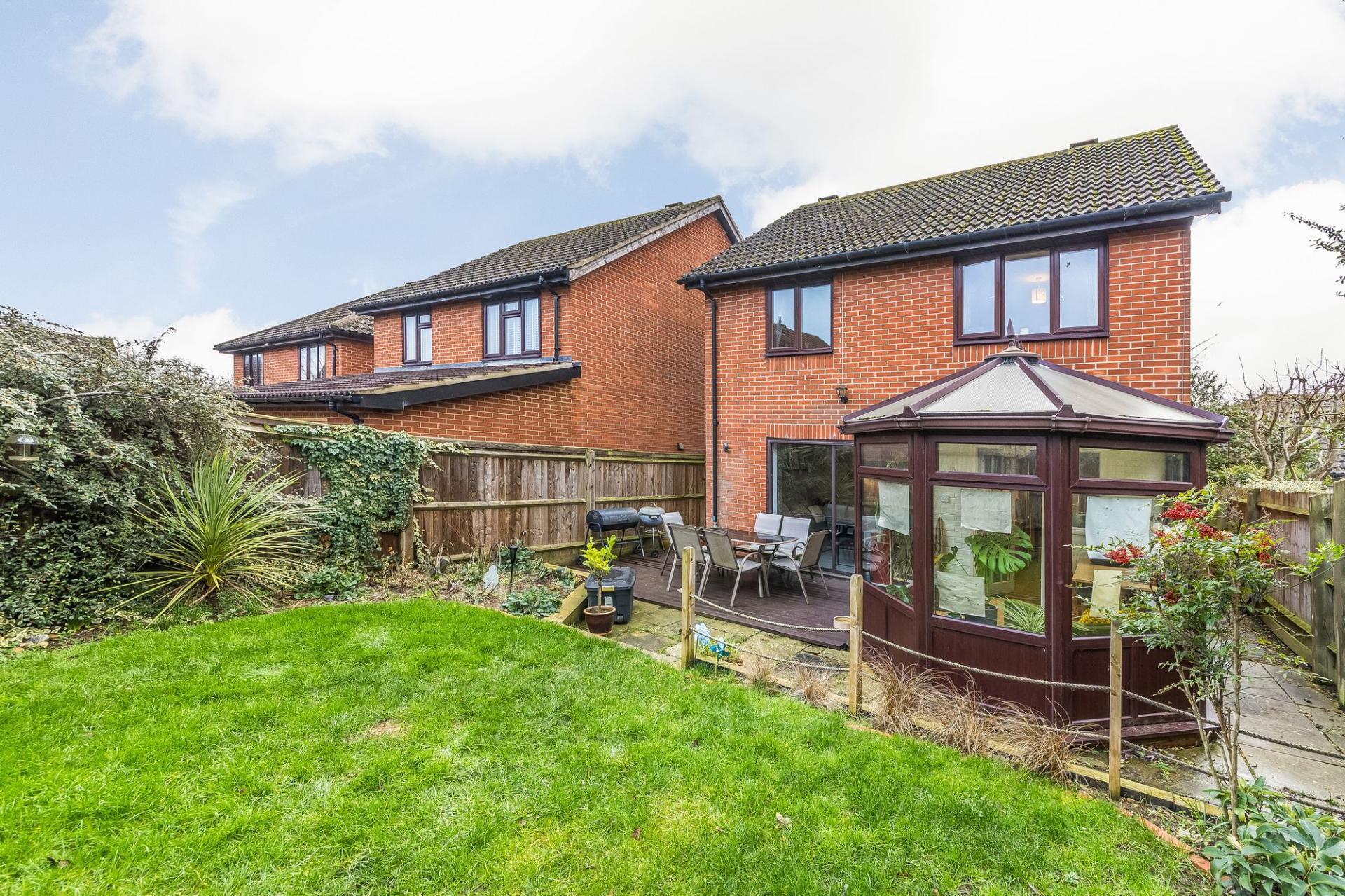 - Landscaped rear garden offering high degree of privacy, with decked family area leading onto patio, raised lawn, and well-stocked flower and shrub borders, enclosed by timber fencing with side acc...
