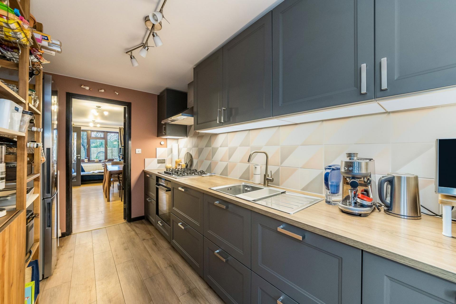 - Stylishly refitted kitchen with an excellent range of wall and base units, leading through to the conservatory with views over and access to the rear garden