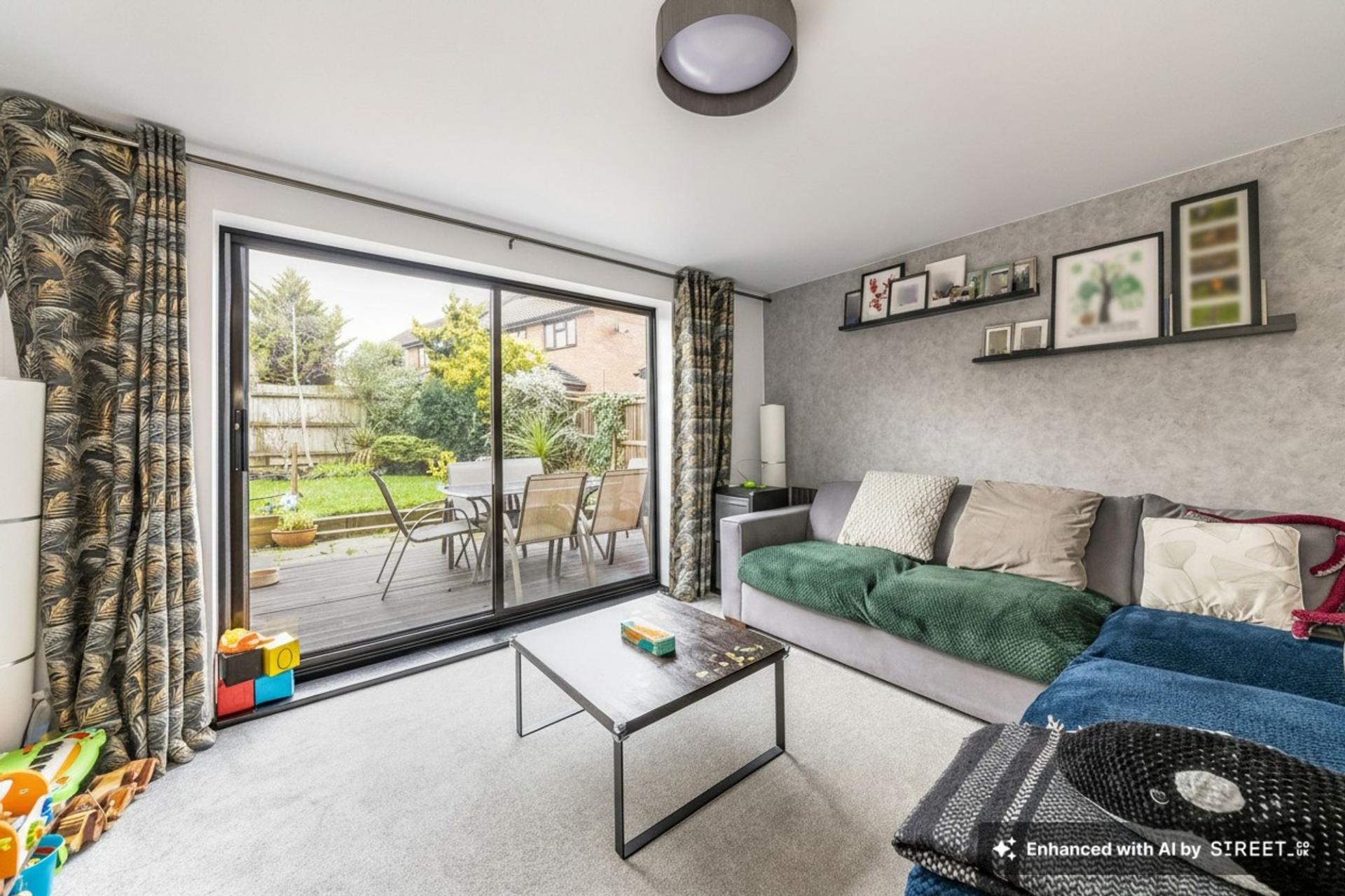 - Spacious rear living room featuring sliding doors opening directly onto the well-maintained decked area and rear garden