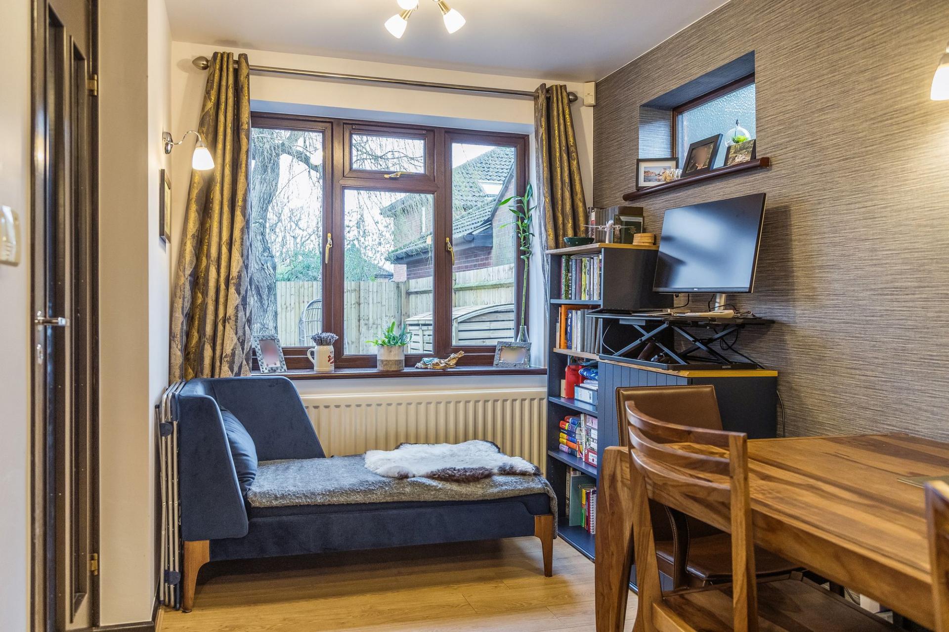 - Insulated converted integral garage, accessed from the driveway, and incorporating a large wash station with hot and cold running water plus space for a washing machine and tumble dryer